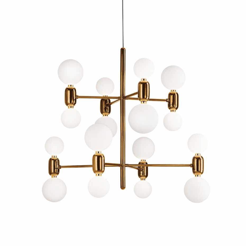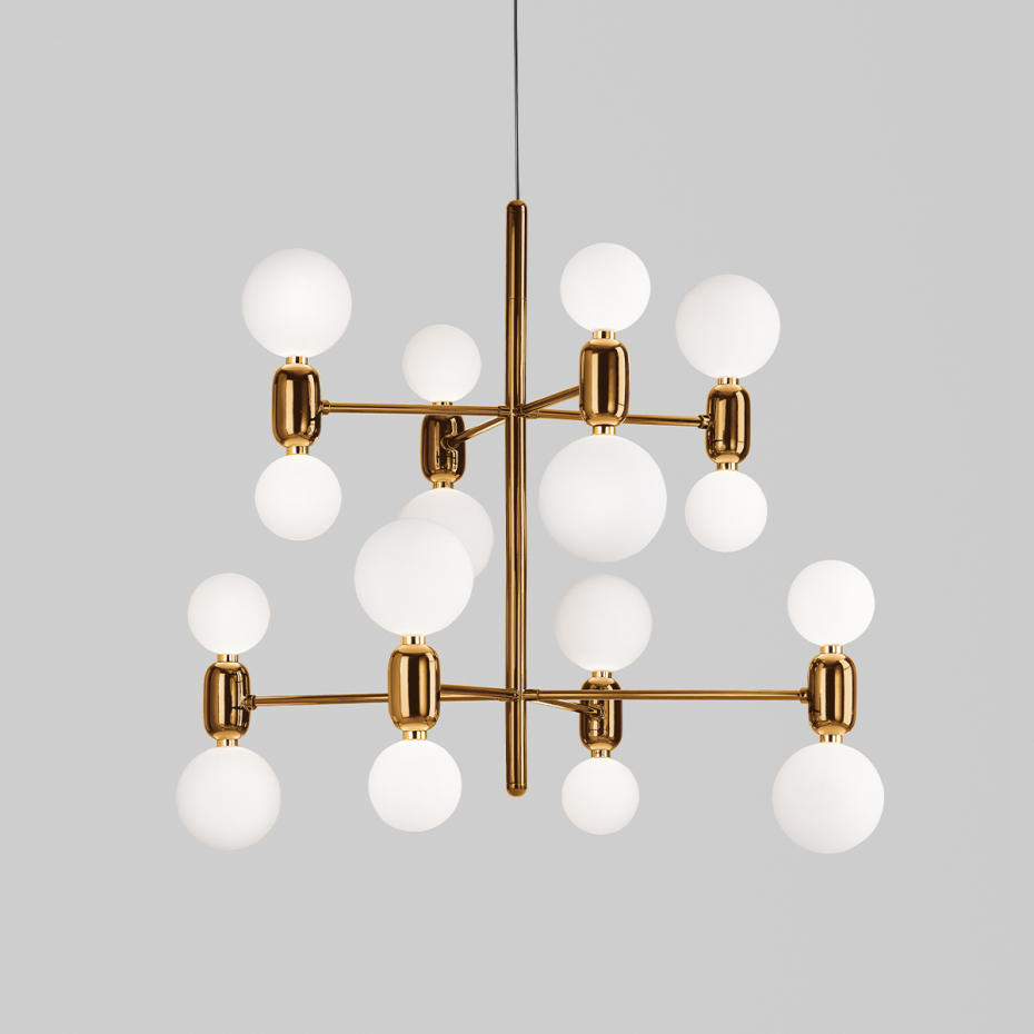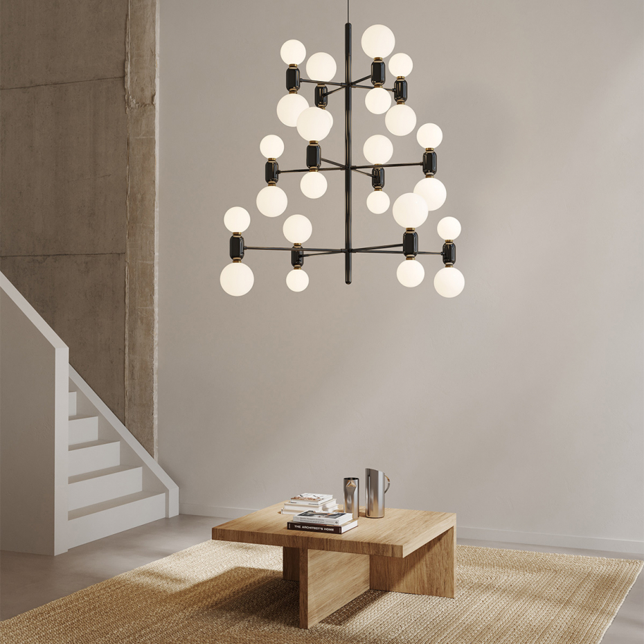 Aballs 8 Ljuskrona från Parachilna är en storslagen och exklusiv takkrona bestående av 16 munblåsta glaskupor monterade på baser i handgjord italiensk keramik. Denna designlampa förenar ädla material med ett tidlöst hantverk i en imponerande formation som skapar ett lyxigt och modernt intryck i ett rymligt vardagsrum.