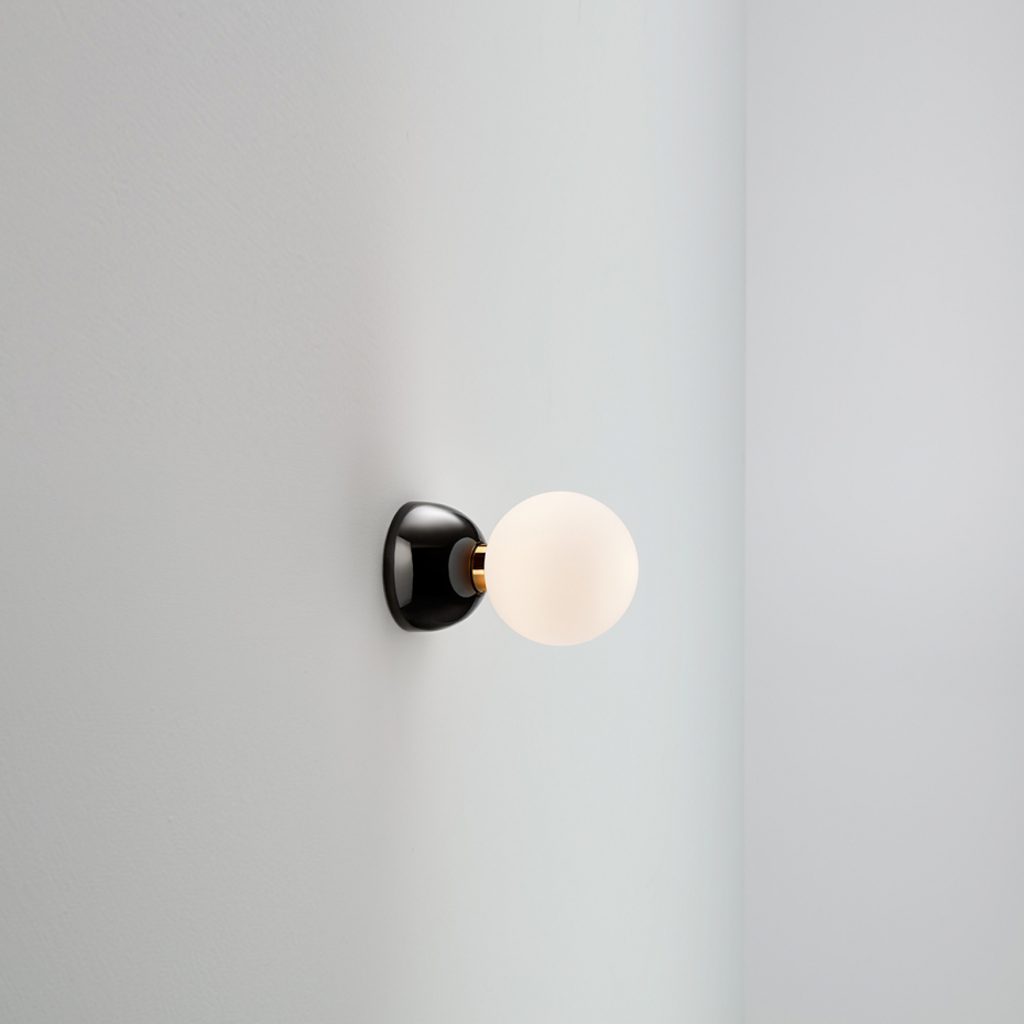 Aballs A II PE Vägglampa/Taklampa från Parachilna är en mångsidig och exklusiv armatur där en munblåst glaskupa möter en bas i handgjord italiensk keramik. Denna designlampa kombinerar ädla material med ett tidlöst hantverk, vilket gör att den fungerar lika bra monterad på väggen i en hall som i taket i ett mindre vardagsrum.