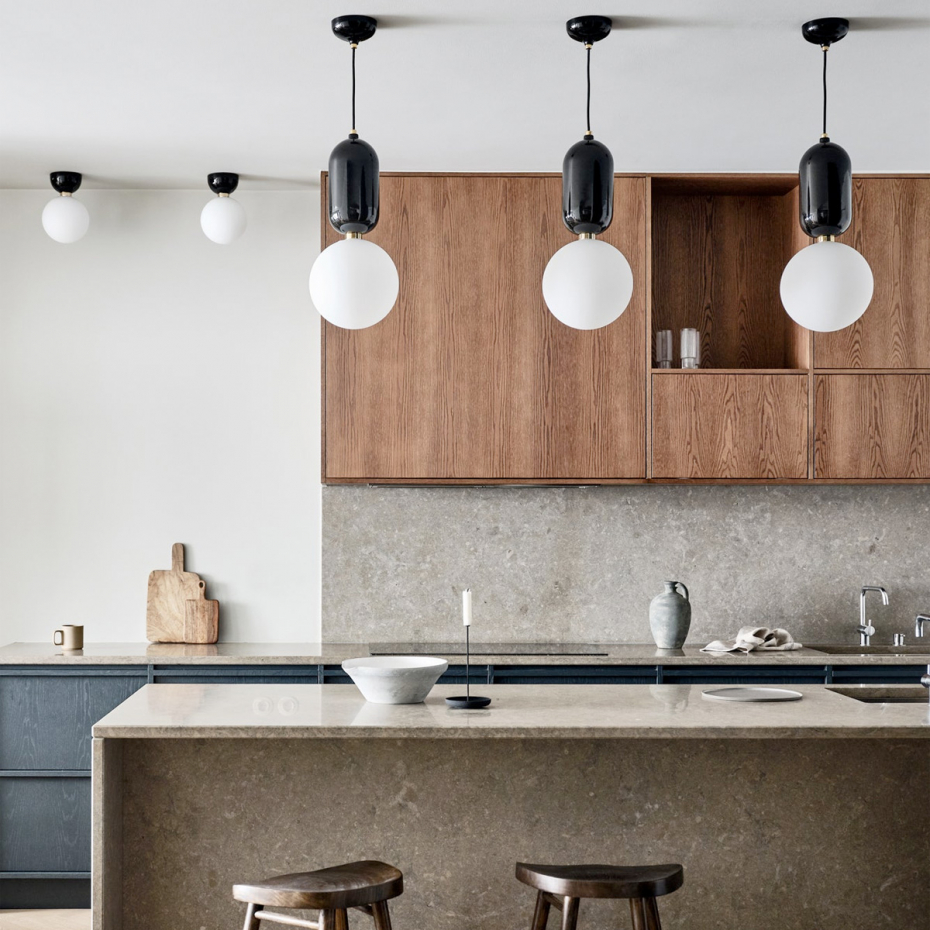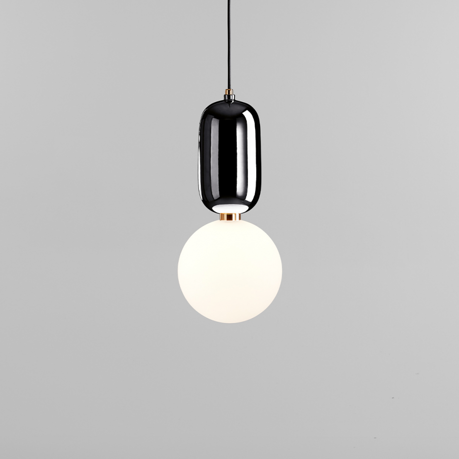 Aballs T ME Pendel från Parachilna är den mellanstora taklampan i serien, där en munblåst glaskupa möter en bas i handgjord italiensk keramik. Denna designlampa förenar ädla material med ett tidlöst hantverk i en balanserad form som passar utmärkt över ett mindre matbord eller i ett hörn av ditt vardagsrum.