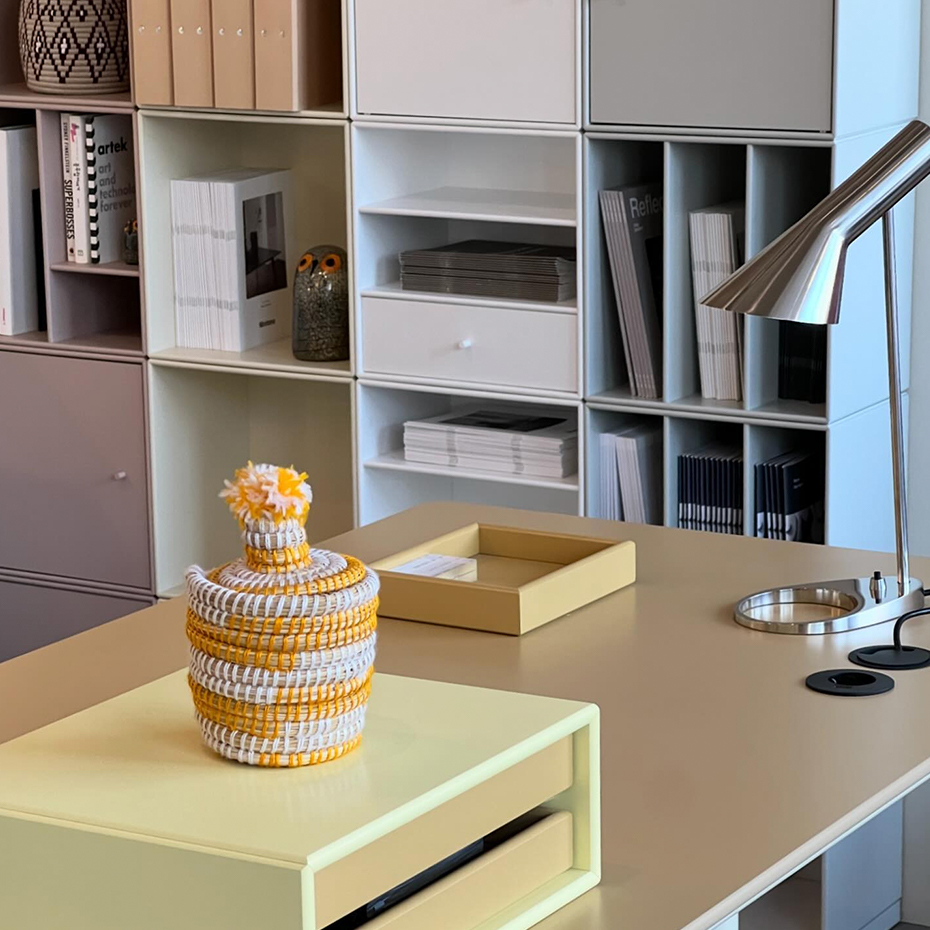 AJ Bordslampa Rostfritt Polerat Stål från Louis Poulsen är en AJ-lampa i den senaste färgkollektionen. Bordslampan ger ett direkt och riktningsbestämt ljus. Armaturhuvudets karakteristiska design formar ljuset. Det vippbara armaturhuvudet bidrar till att optimera ljusspridningen ytterligare. Skärmen är vitlackerad på insidan vilket ger ljuset en behaglig spridning. Arne Jacobsen designade AJ-lampan för SAS Royal Hotel i Köpenhamn (Radisson Collection) år 1957. I dag betraktas AJ-serien som den design som den danske arkitekten är mest känd för över hela världen. På den tiden bestod AJ-serien av ett bord och en golvlampa samt en vägglampa, en mindre bordslampa och en bordslampa som var konstruerad för att fästas i bordet. Vägglampan prydde lobbyn i ett utförande i rostfritt stål i vackra rader när hotellet öppnades 1960. Tillsammans med pendeln AJ Royal utgjorde AJ-lampan en del av det övergripande designkoncept som Jacobsen skapade för hotellet.