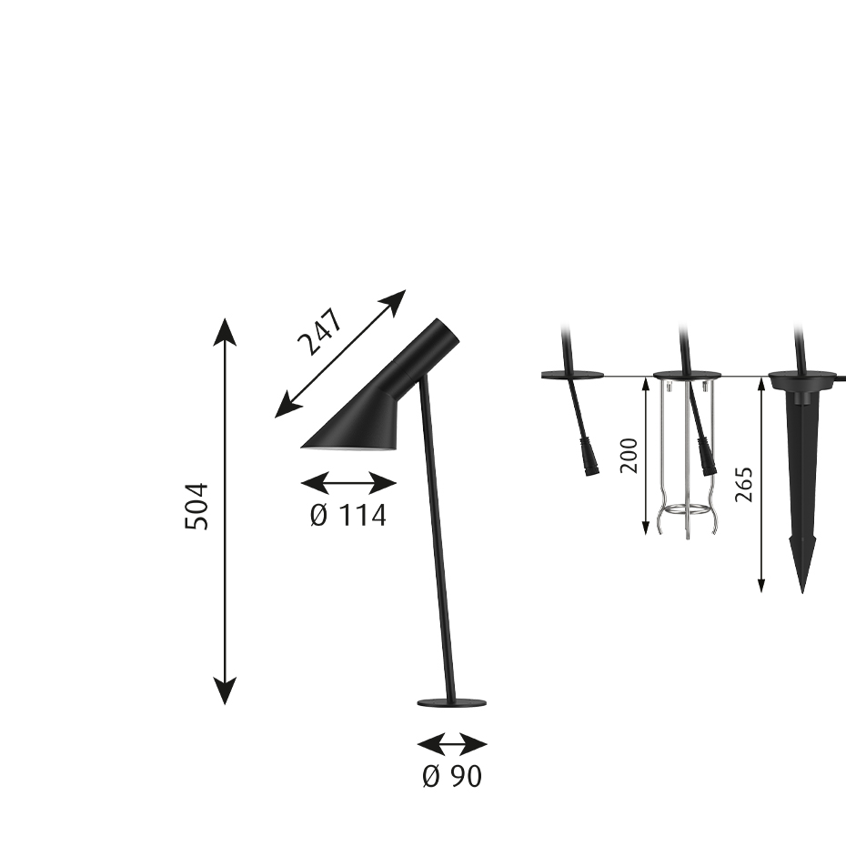Pollare med fotplatta, för montering på en yta, kräver installation av behörig elektriker.