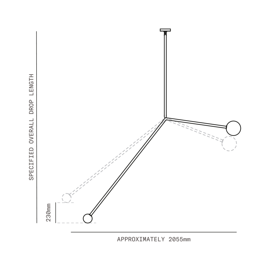Önskad totallängd specificeras vid beställning. Mässingsstängerna är fasta och inte justerbara. På grund av naturliga variationer i glasets vikt kan den faktiska höjden variera med cirka ±11,5 cm.