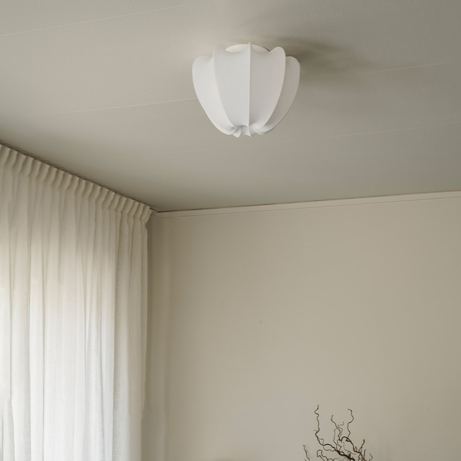 Anna Mini plafond från Watt & Veke är en liten och nätt takplafond i mjuk bomullsjersey med ett tidlöst och harmoniskt uttryck. Den blomknoppsinspirerade formen ger ett mjukt ljus och passar perfekt i mindre utrymmen som hall, sovrum eller korridor. För ett jämnt och behagligt sken rekommenderas en E27 LED-ljuskälla i opalglas. En elegant och diskret taklampa som skapar en varm atmosfär i hemmet.