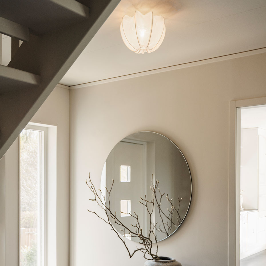 Anna Mini plafond från Watt & Veke är en liten och nätt takplafond i linnetyg med ett tidlöst och harmoniskt uttryck. Den blomknoppsinspirerade formen ger ett mjukt ljus och passar perfekt i mindre utrymmen som hall, sovrum eller korridor. För ett jämnt och behagligt sken rekommenderas en E27 LED-ljuskälla i opalglas. En elegant och diskret taklampa som skapar en varm atmosfär i hemmet.