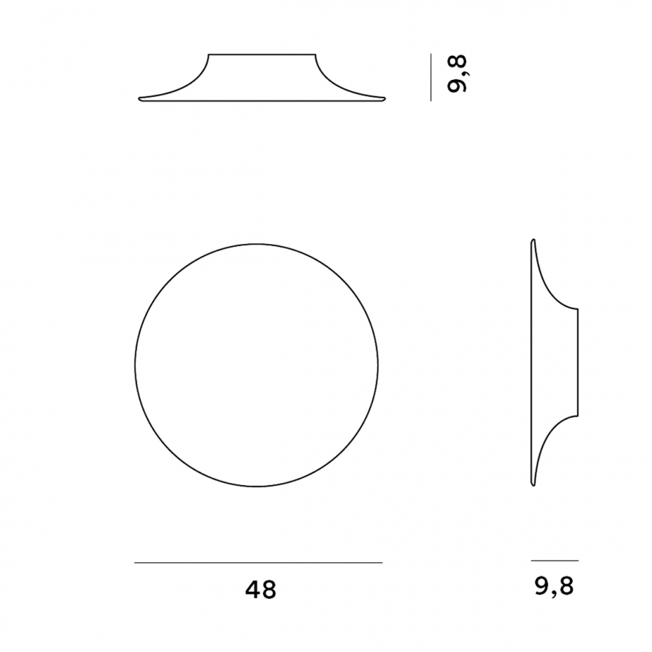 Diameter: 48 cm Djup: 9,8 cm Energiklass: E IP-klass: 20 Ljuskälla: Integrerad Material: Målad borstad aluminium/PMMA Montering: För fast montage Sockel: LED, 26,5 W 2878 lm 2700 K Övrigt: Dimbar (Push DALI)