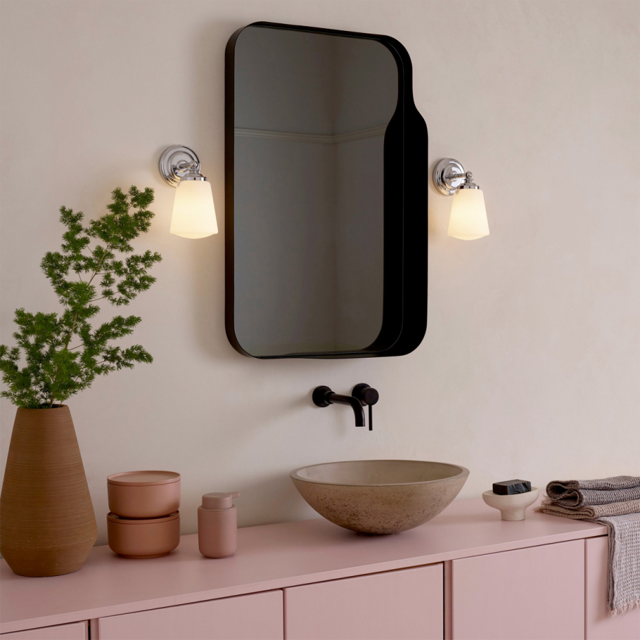 Anton Vägglampa IP44 från Astro Lighting är en badrumslampa i polerad krom med ett säkert monteringsfäste som gör den idealisk att placera ovanför eller bredvid badrumsspegeln. Lampan har en design med en rak arm och dolda fästen för ett sömlöst utseende, vilket ger en tidlös estetik som passar i alla typer av miljöer.