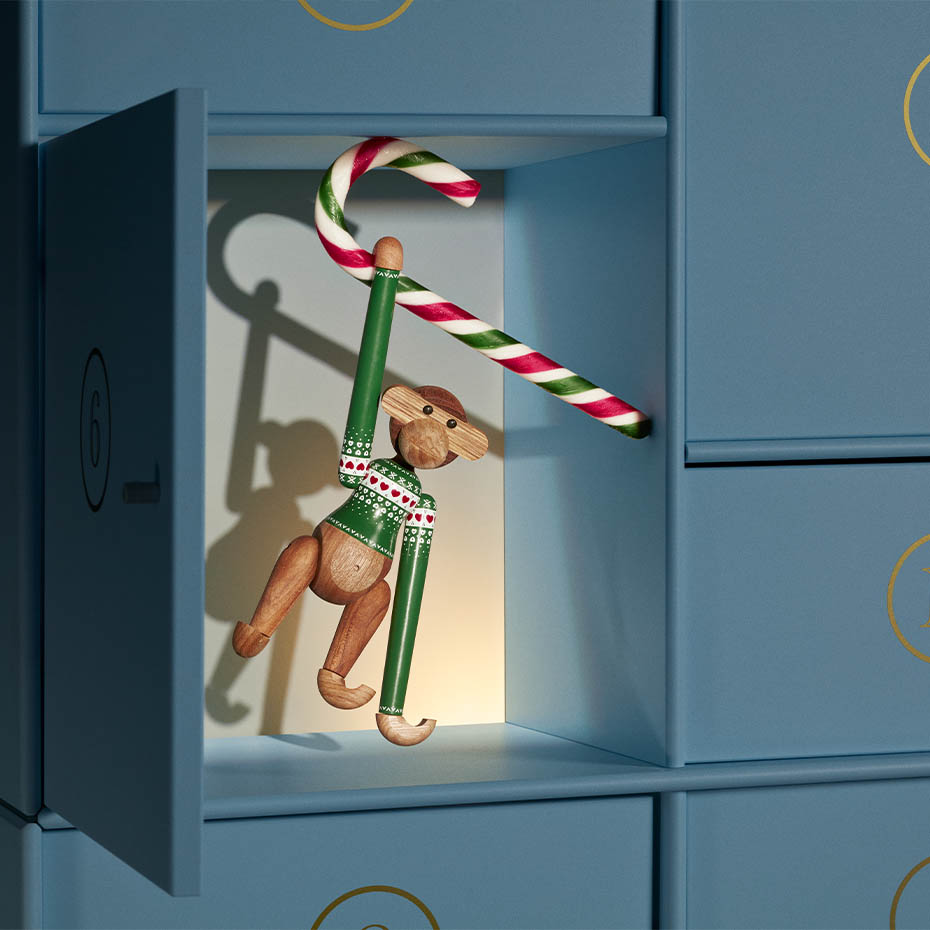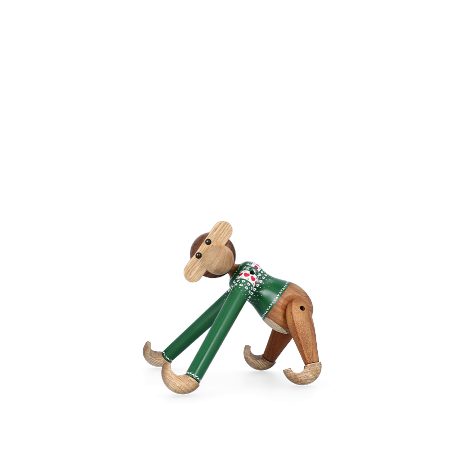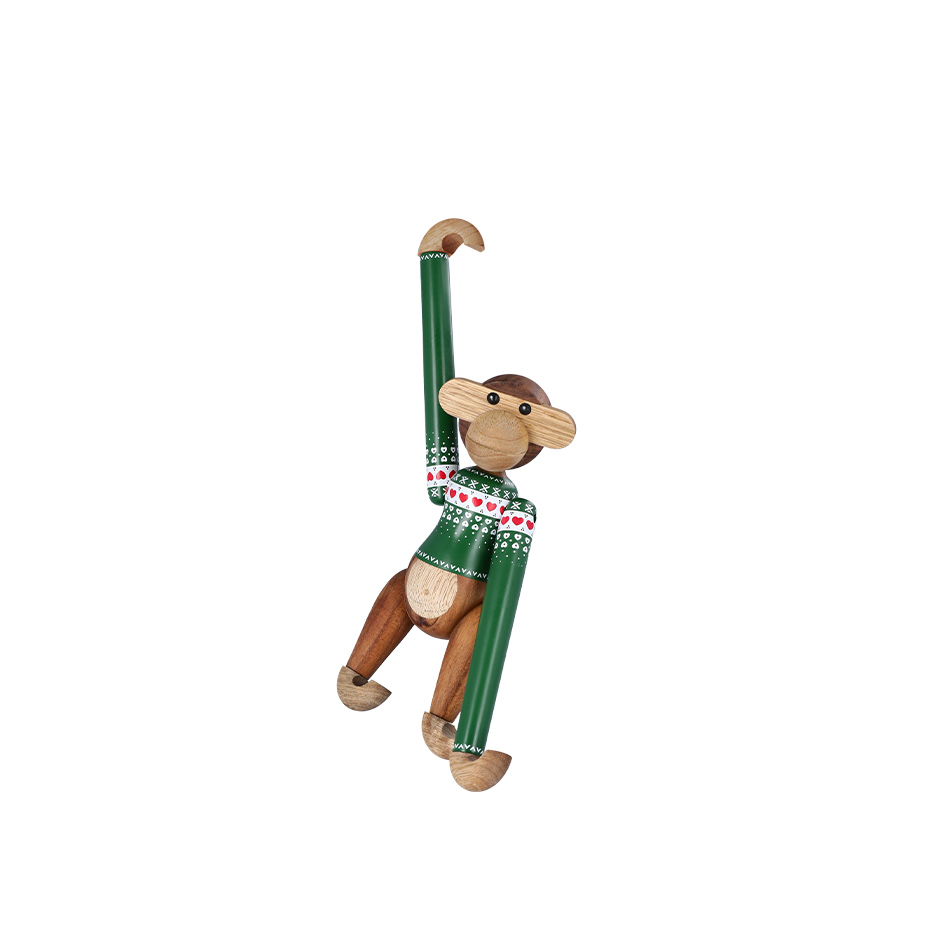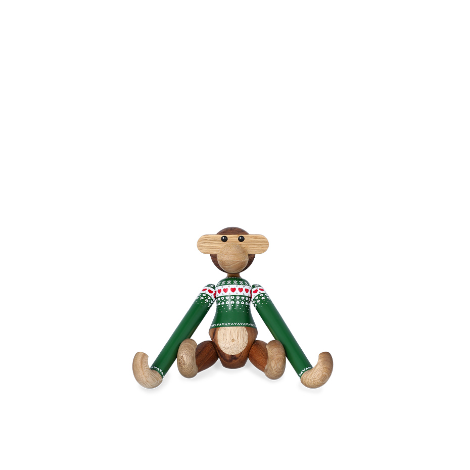 Apa Trädjur Liten Christmas Jumper 2025 från Kay Bojesen är en festlig julutgåva av den klassiska designikonen. Tillverkad i FSC®-certifierad teak och limba, 18,5 cm hög, och klädd i en handmålad grön jultröja med röda och vita julehjärtan. Ett lekfullt samlarobjekt som sprider humor, värme och julglädje – en tidlös kombination av dansk design och jultradition.