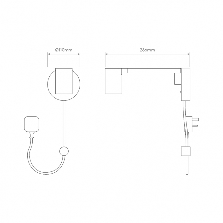 Diameter: 5,7 cm (skärm), 11 cm (fäste) Djup: 28,6 cm Ljuskälla: Ingår ej Material: Metall Sladdlängd: 2,5 m Sockel: GU10, Max 6 W LED Övrigt: Strömbrytare på armaturen