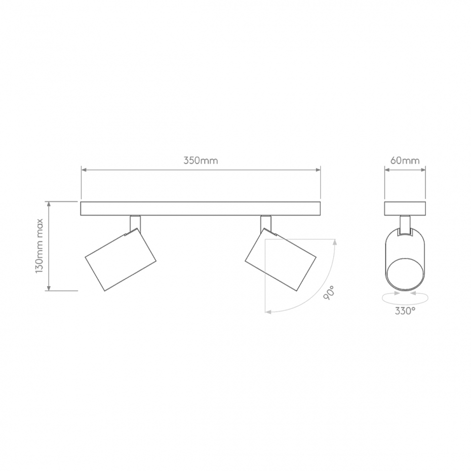 Bredd: 35 cm Djup: 6 cm Höjd: 13 cm IP-klass: 20 Ljuskälla: Ingår ej Material: Metall Montering: För fast montage Sockel: 2 x GU10, Max 50 W