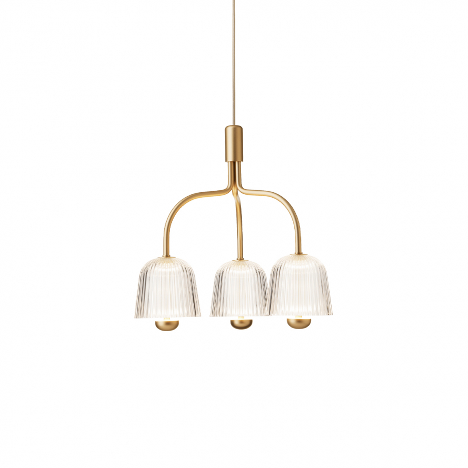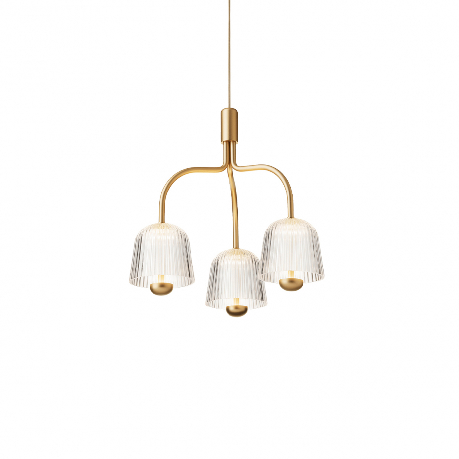 Asteea 3 Ljuskrona Satin Brass/Ripple Clear