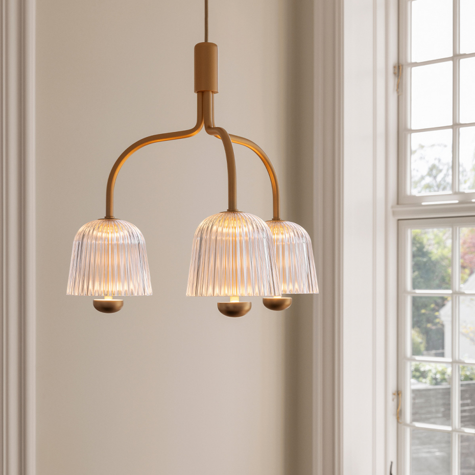Asteea 3 Ljuskrona från Nuura är en elegant designlampa med tre räfflade lampkupor i akryl som sprider ett mjukt, indirekt ljus och ger ditt vardagsrum en sofistikerad känsla. Denna mindre ljuskrona förenar ett organiskt uttryck med en tidlös design, vilket gör den till ett fantastiskt val för en stämningsfull ljussättning i hemmets hjärta.