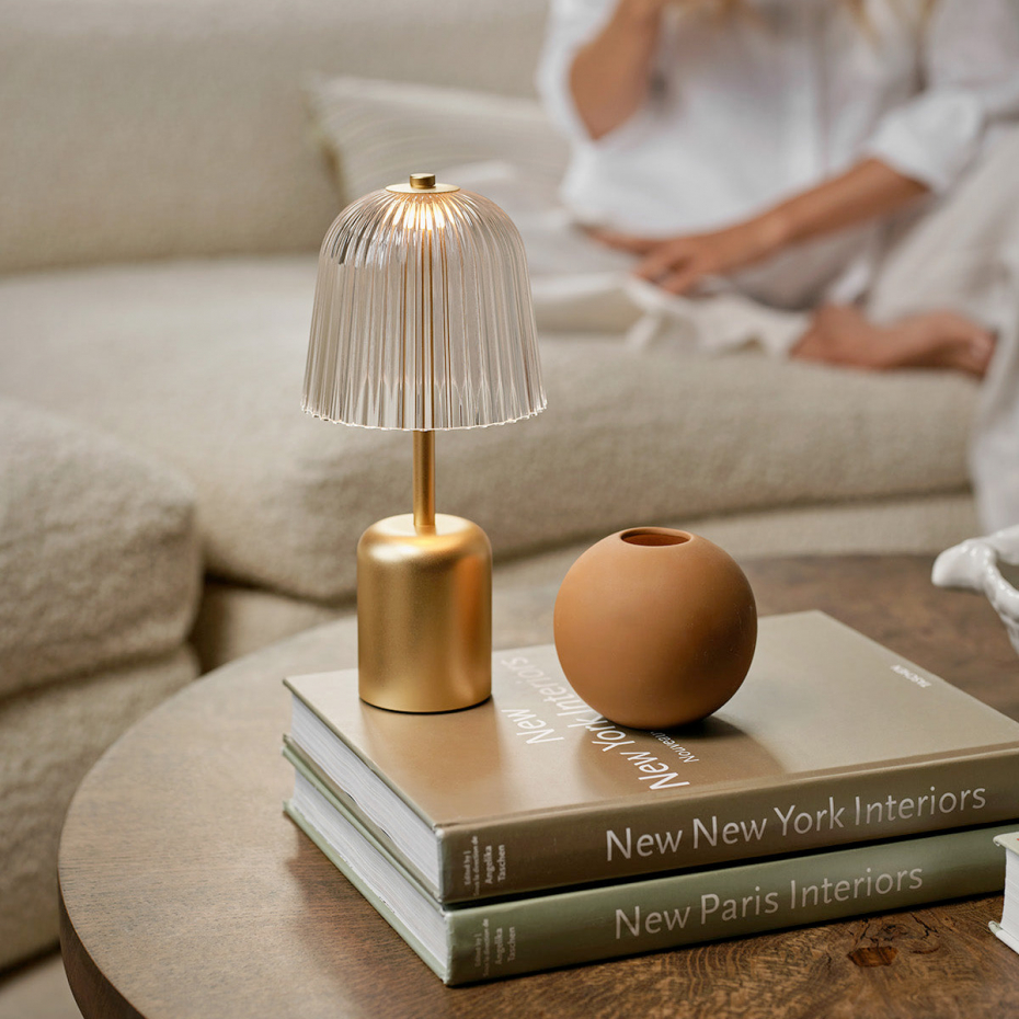 Asteea Bordslampa Portable Satin Brass/Ripple Clear