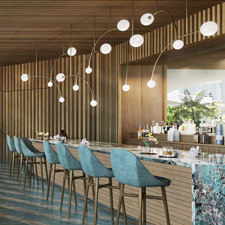 Balance 1.0 Pendel från SkLO är en skulptural och asymmetrisk pendel som kombinerar två handblåsta glaskupor i olika storlekar – en större på ett kort, horisontellt rör och en mindre på en längre, mjukt böjd arm. Formen är elegant balanserad, vilket ger lampan en lugn rörelse och visuell harmoni.