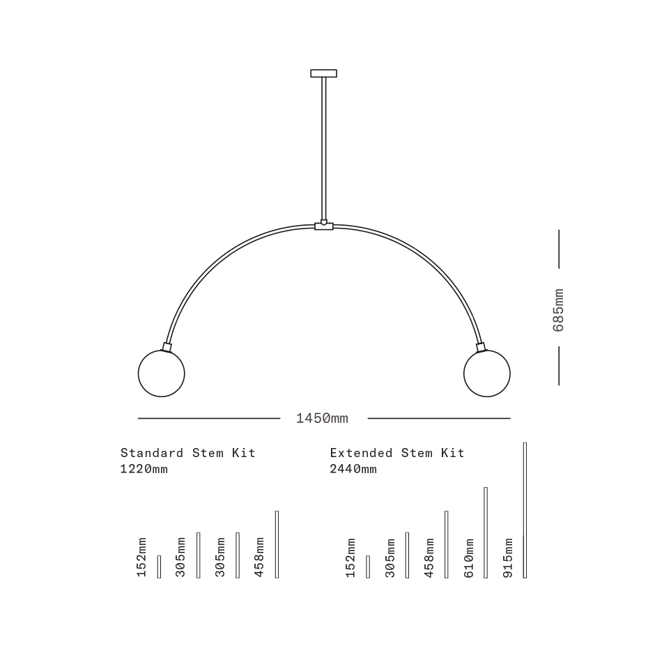 En förlängd stångsats finns som tillval med ytterligare längder upp till 91,5 cm. Anpassade stånglängder kan erbjudas mot tillägg.