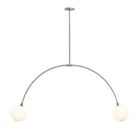 Balance 2.0 Pendel från SkLO är en elegant och symmetrisk pendel där två böjda armar bär handblåsta glaskupor av tjeckiskt glas. Formen präglas av balans, enkelhet och rörelse, vilket gör lampan lika vacker över ett matbord som i höga rum där den får komma till sin rätt.