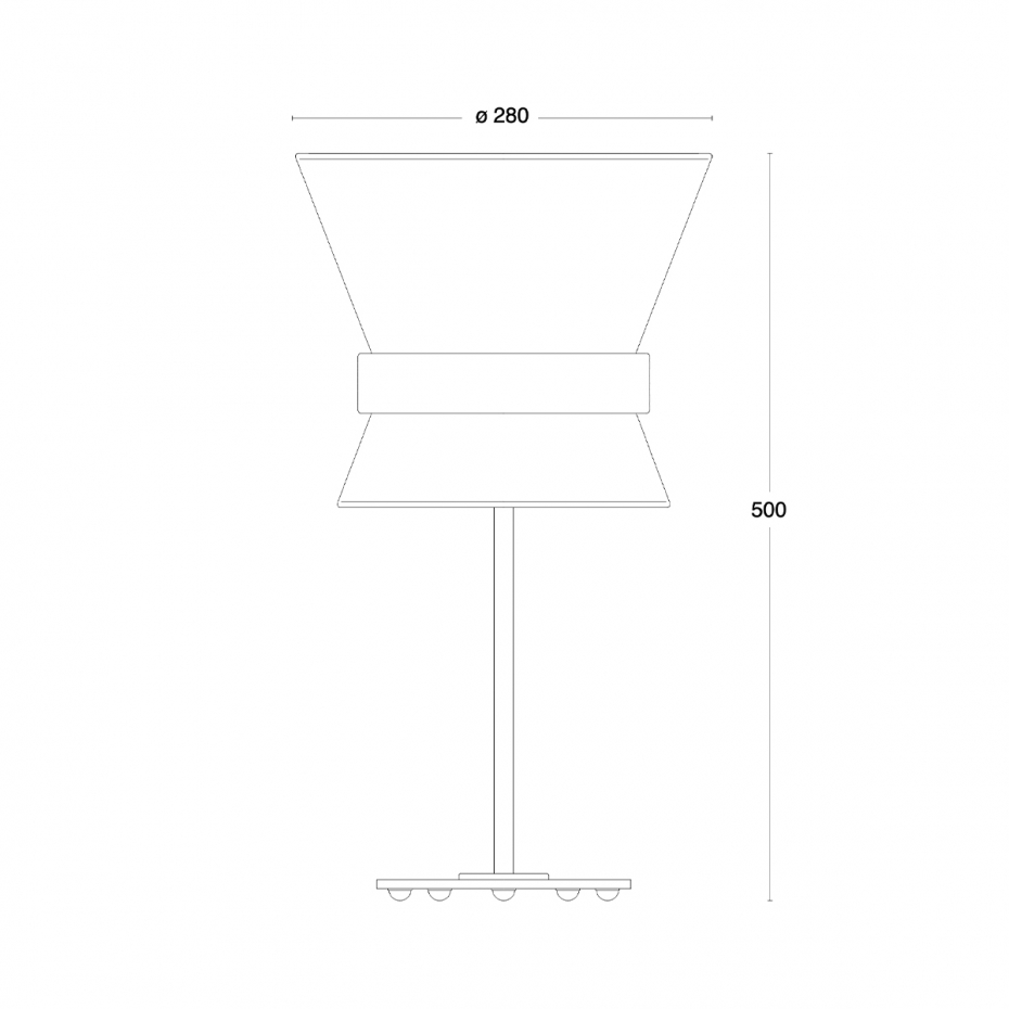 Diameter: 28 cm (skärm) Höjd: 50 cm Ljuskälla: Ingår ej Material: Rå mässing/Textil Sladdlängd: 2,5 m Sockel: E27, Max 60 W Övrigt: Dimmer på sladden. Observera att de råa materialen förändras med tiden och utvecklar en patina – en viktig del av designen och ett kvitto på hantverk och ärliga material.