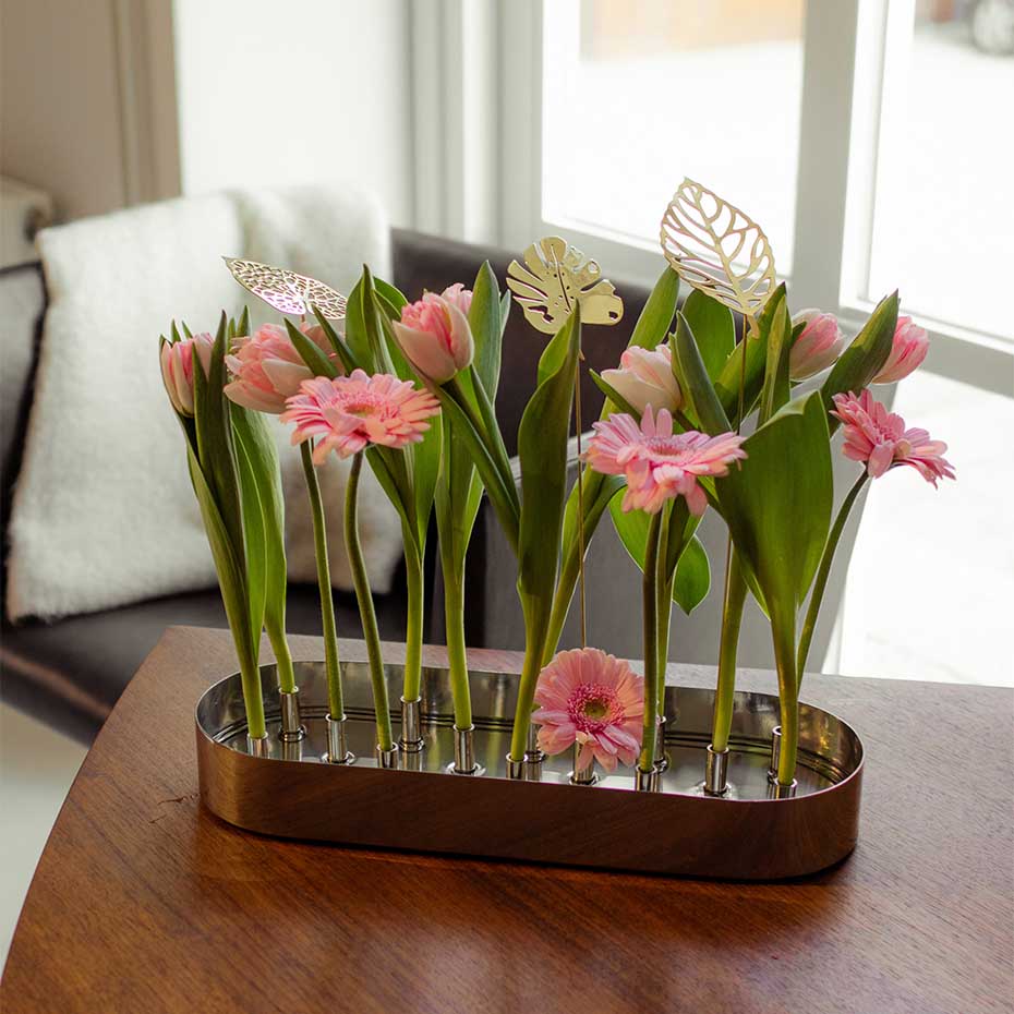 Brass Leaves Wood från Klong är dekorativa mässingsblad som säljs i 2-pack och passar perfekt i både vaser och blomkrukor. De förskönar hemmet även utan färska blommor och kan lika gärna kombineras med levande växter för ett unikt uttryck. Ett stilrent tillbehör som ger vardagsrummet en tidlös elegans.