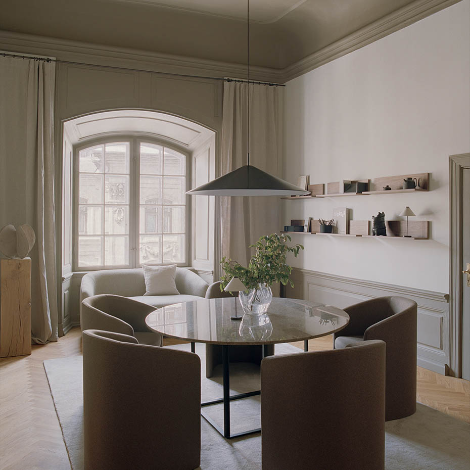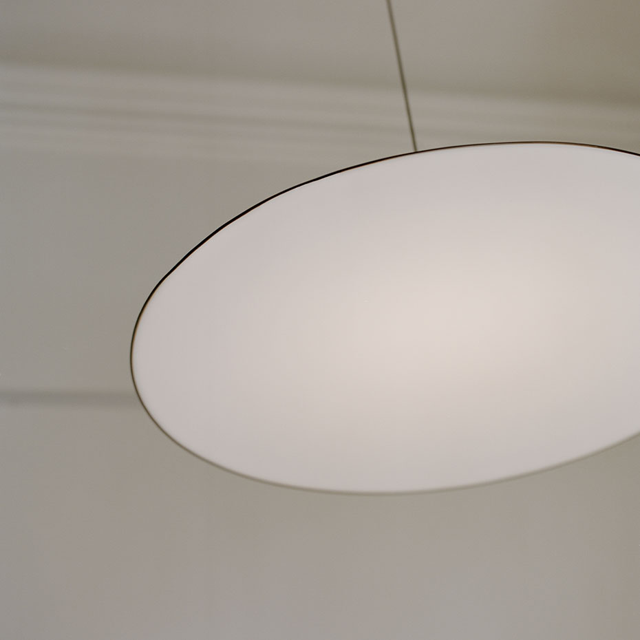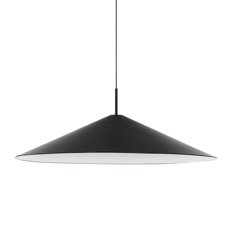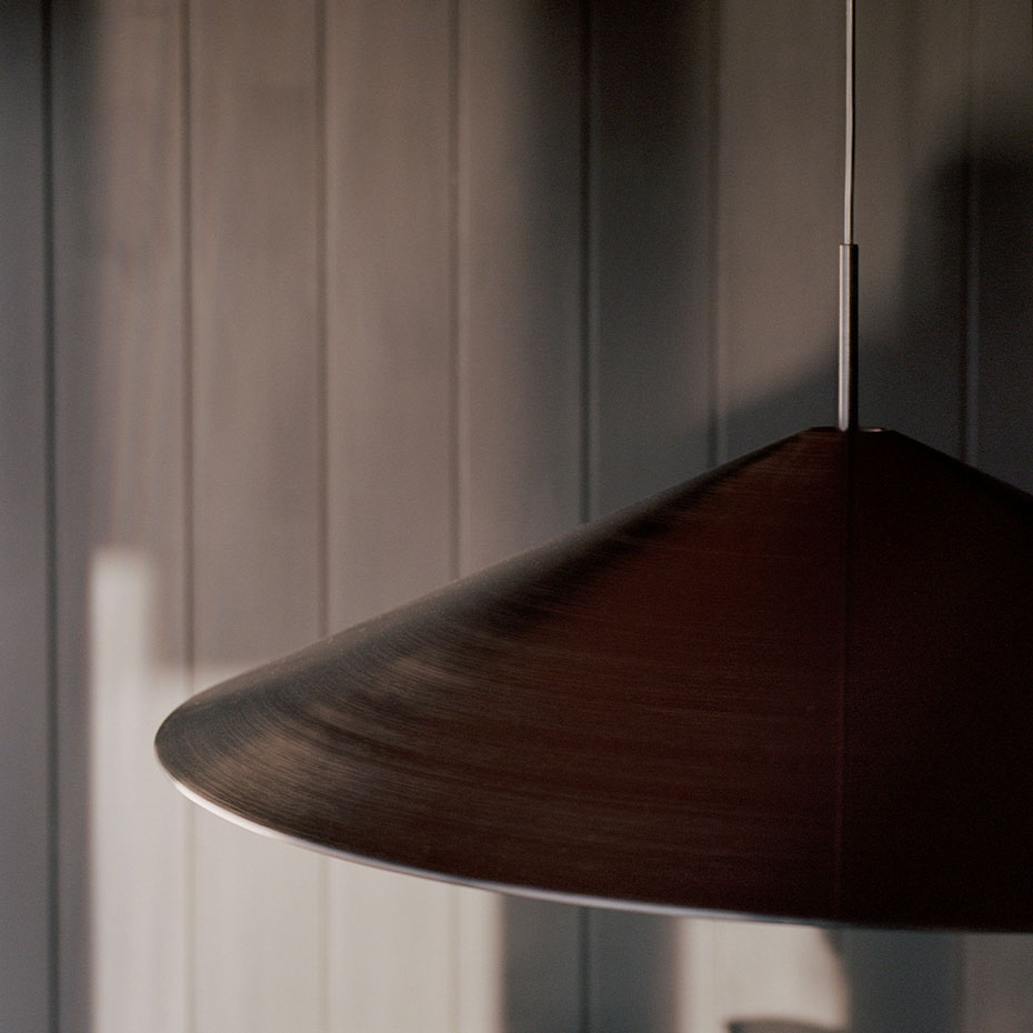 Brolly Pendel Ø90cm från New Works visar styrkan i enkel och genomtänkt formgivning. Med sin precisa koniska silhuett förenar den arkitektonisk skärpa med ett tidlöst uttryck som passar i de flesta miljöer. Den konkava diffusorn sprider ett mjukt och behagligt ljus utan att blända, vilket gör lampan perfekt att placera över matbordet eller som ett elegant blickfång i rummet. En pendel som kombinerar funktion, estetik och lugn harmoni i ett.