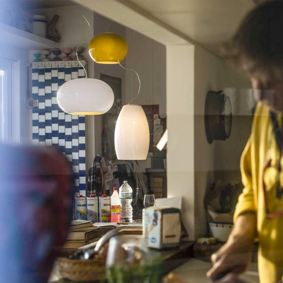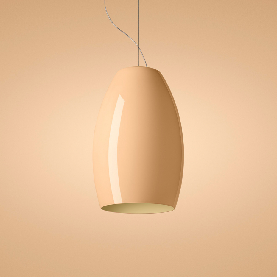 Buds 1 Pendel från Foscarini är en sofistikerad designlampa där det munblåsta hantverket står i fokus. Denna modell har en vacker, puderrosa ton (Cipria) som upplevs sval och elegant när lampan är släckt, men som tack vare glasets fem lager förvandlas till ett varmt och behagligt sken när den tänds. Med sin slanka, vertikala form är Buds 1 idealisk att hänga ensam som ett stilrent blickfång eller i grupp för att skapa en dynamisk och lyxig ljussättning i ditt hem.