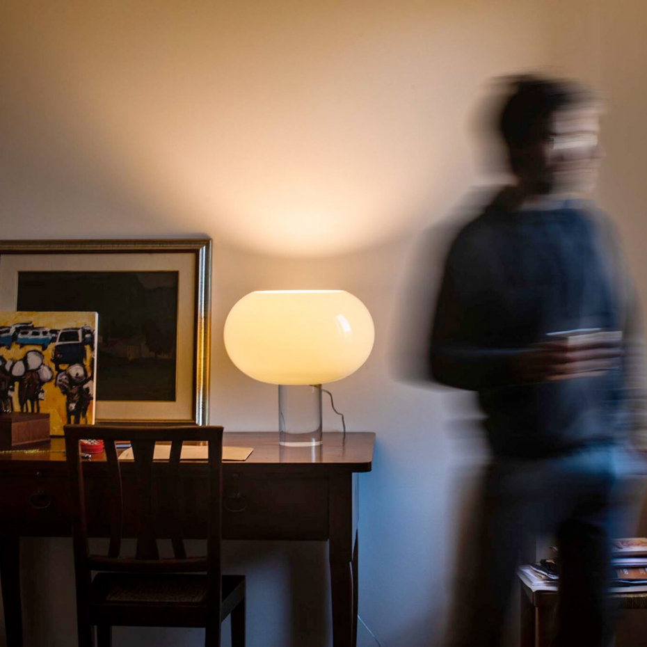 Buds 2 Bordslampa från Foscarini kännetecknas av sin stora, munblåsta glasskärm som hantverksmässigt tillverkas i fem lager för högsta kvalitet. Denna designlampa har en sofistikerad karaktär som växlar beroende på om den är tänd eller släckt – från svalt elegant till varmt och inbjudande. Med sin generösa form och stilrena bas blir Buds 2 ett vackert blickfång som ger en behaglig och balanserad ljussättning i ditt hem.