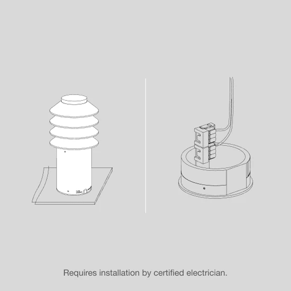 Pollare med fotplatta, för montering på en yta, kräver installation av behörig elektriker.