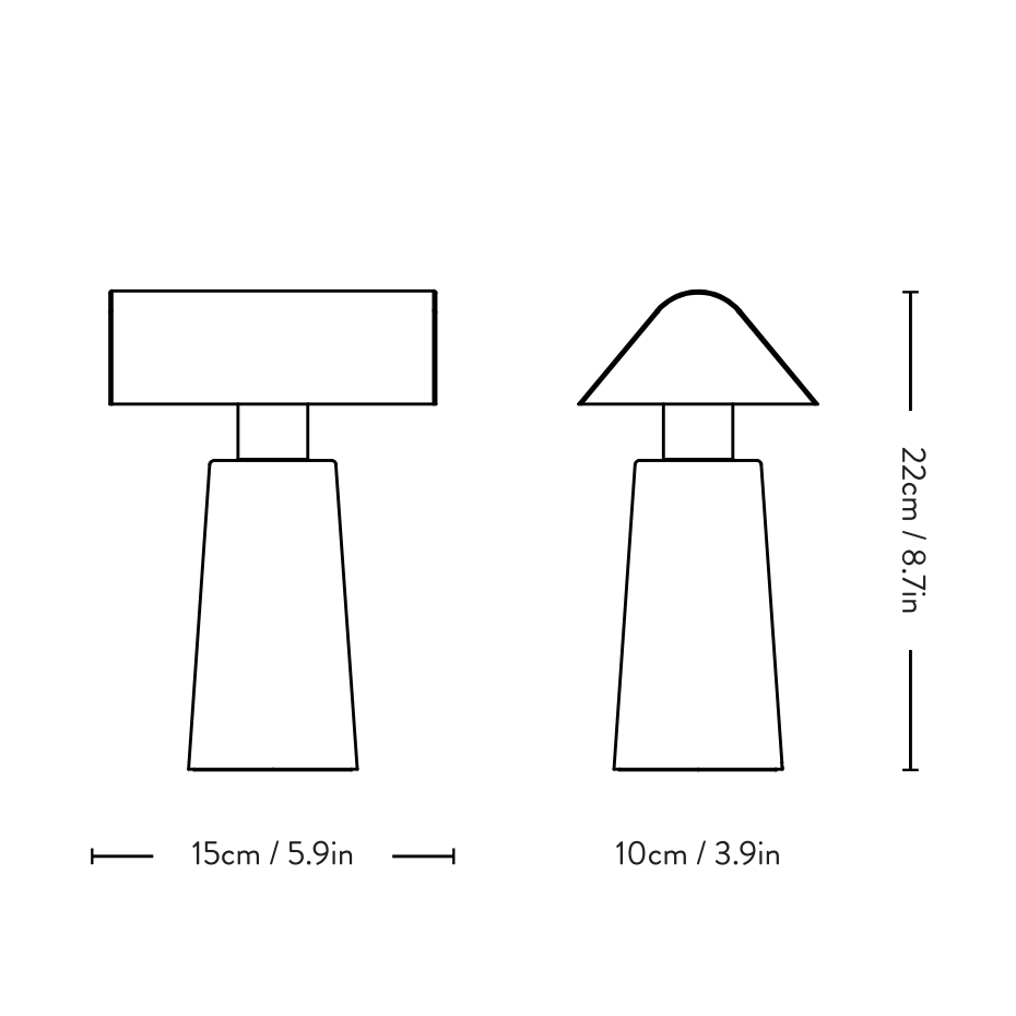 Batteritid: Ca 11 timmar Bredd: 15 cm Djup: 10 cm Höjd: 22 cm IP-klass: 44 Ljuskälla: Ingår Material: Polykarbonat/Metall Sladdlängd: 2 m Sockel: G4, LED 1 W 100 lm 2700 K 25.000 h Övrigt: Har integrerad 3-stegs dimmer. Magnetisk micro USB-sladd och ett uppladdningsbart batteri ingår.