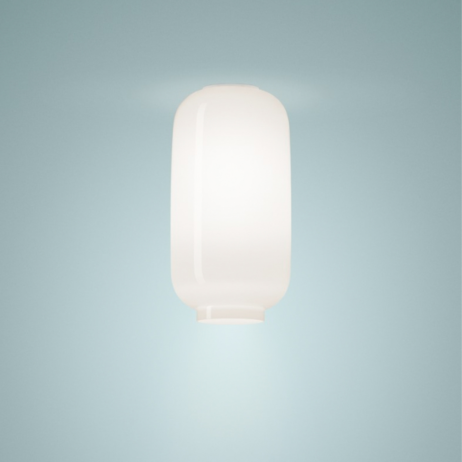 Chouchin 2 Plafond från Foscarini är en avskalad och elegant version där den traditionella lyktformen får ett helt monokromt uttryck. Till skillnad från modellerna med kontrasterande ringar, är denna variant helt i vitt, munblåst glas, vilket ger ett extremt rent och minimalistiskt intryck. Denna designlampa fungerar som en lysande skulptur i taket och sprider en mjuk, diffus ljussättning åt alla håll, samtidigt som den bibehåller det karaktäristiska riktade ljuset nedåt. Ett perfekt val för en modern miljö där man vill ha en harmonisk och enhetlig estetik.