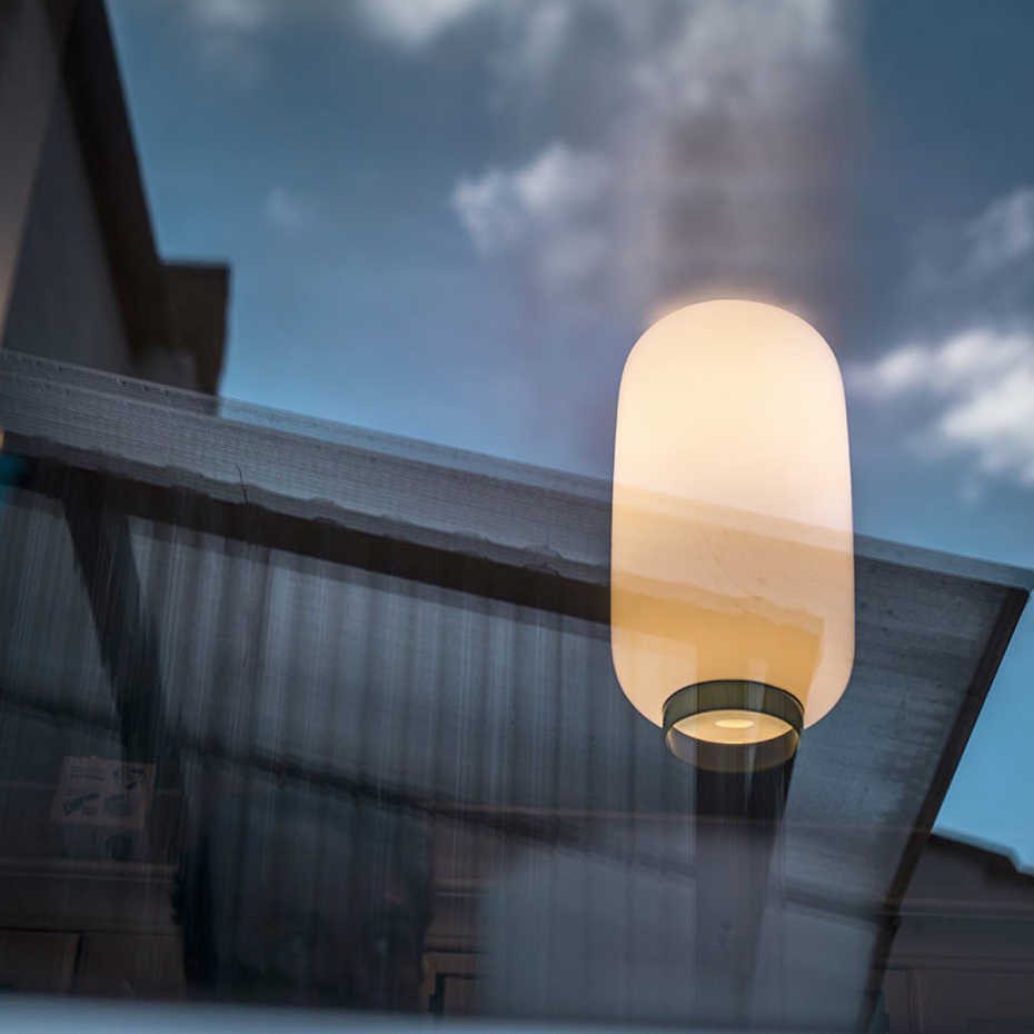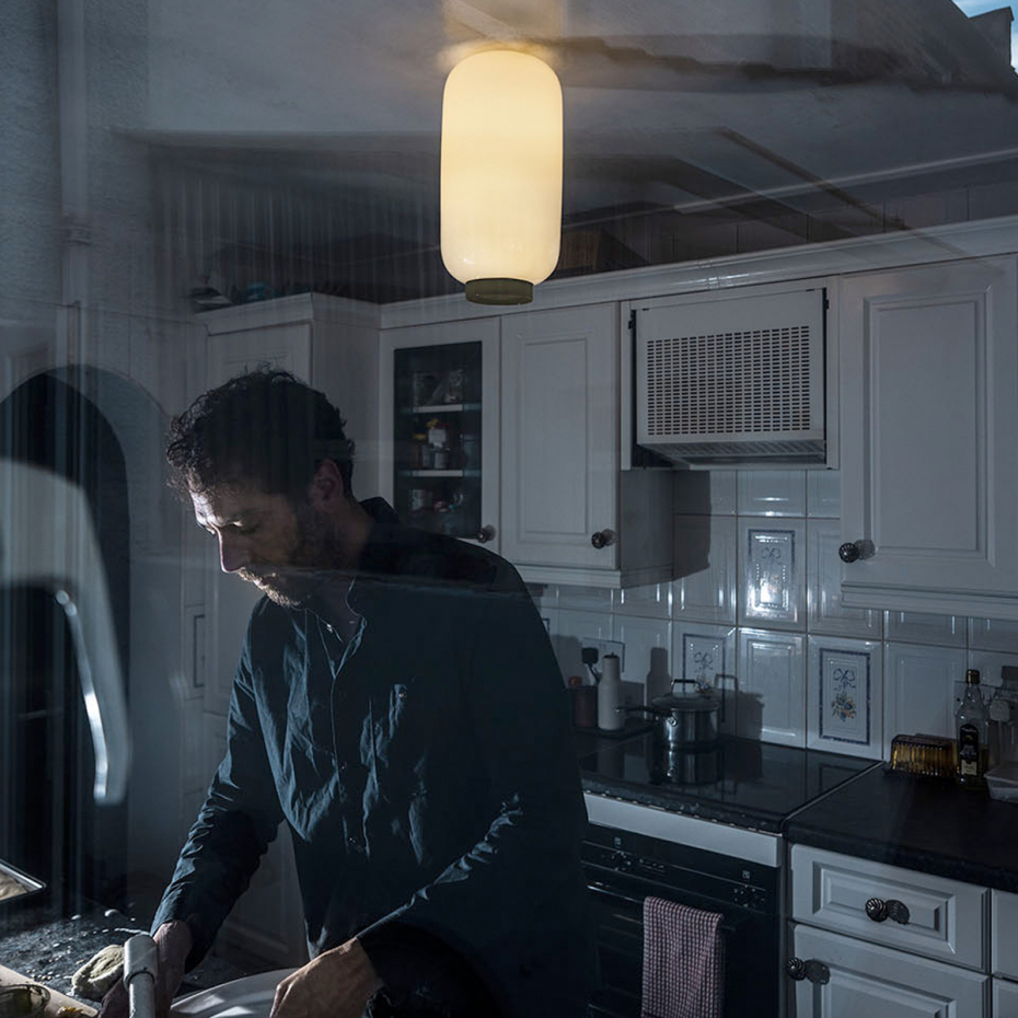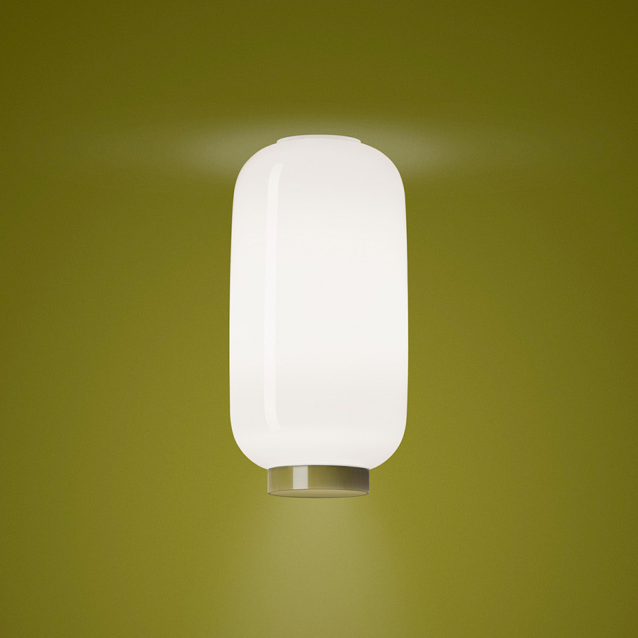 Chouchin 2 Reverse Plafond Green från Foscarini är en elegant takarmatur där den traditionella japanska formen möter italienskt glashantverk. Som en del av "Reverse"-serien har den en vit, munblåst glasskärm som sprider ett mjukt och behagligt ljus i hela rummet, medan den distinkta gröna ringen nedtill ger lampan en modern och grafisk karaktär. Denna designlampa kombinerar ett stämningsfullt allmänljus med ett direkt ljus nedåt, vilket skapar en balanserad och funktionell ljussättning med en sofistikerad färgklick.