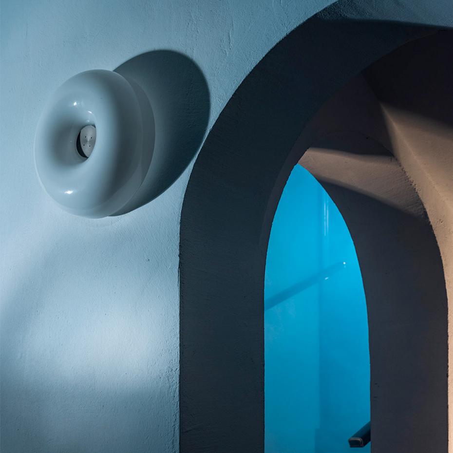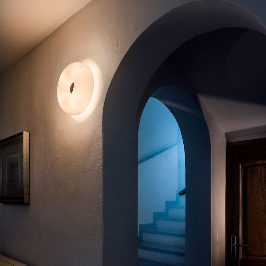Circus Taklampa/Vägglampa Small från Foscarini är en elegant designlampa i blankt, munblåst glas med en mjuk och tidlös form. Den enkla men balanserade siluetten pryds av en dekorativ metallknapp i mitten som ger armaturen karaktär och charm. Tack vare det högkvalitativa glaset sprider Circus en helt bländfri och behaglig ljussättning, vilket gör den till ett perfekt val för både vägg och tak i din inomhusbelysning där du vill kombinera funktion med en diskret dekorativ touch.