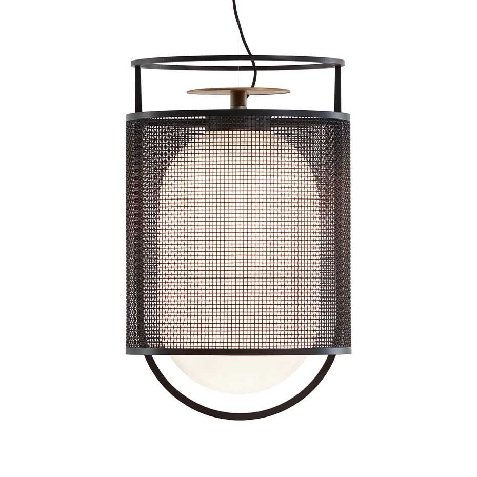 Denglong T GR Outdoor pendel från Parachilna är en designlampa med laser-skuren stålnätstruktur och kupa i glasfiber som sprider ett mjukt, varmt och jämnt ljus. Den passar lika fint över matbordet inomhus som på terrassen eller i uterummet och skapar stämningsfull inomhus- och utomhusbelysning med tidlös design.