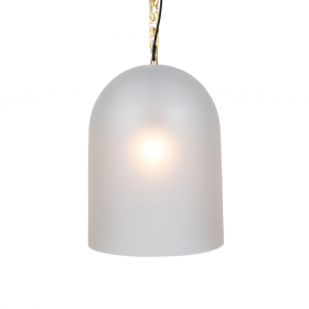 Dome 22 Pendel Small Chain från SkLO är en imponerande pendel med en stor kupol i munblåst tjeckiskt glas med frostad yta som sprider ett mjukt, behagligt ljus. Den eleganta glaskupolen hänger i en kraftig mässingskedja, genom vilken en textilklädd elkabel löper från takkupan till ljuskällan.