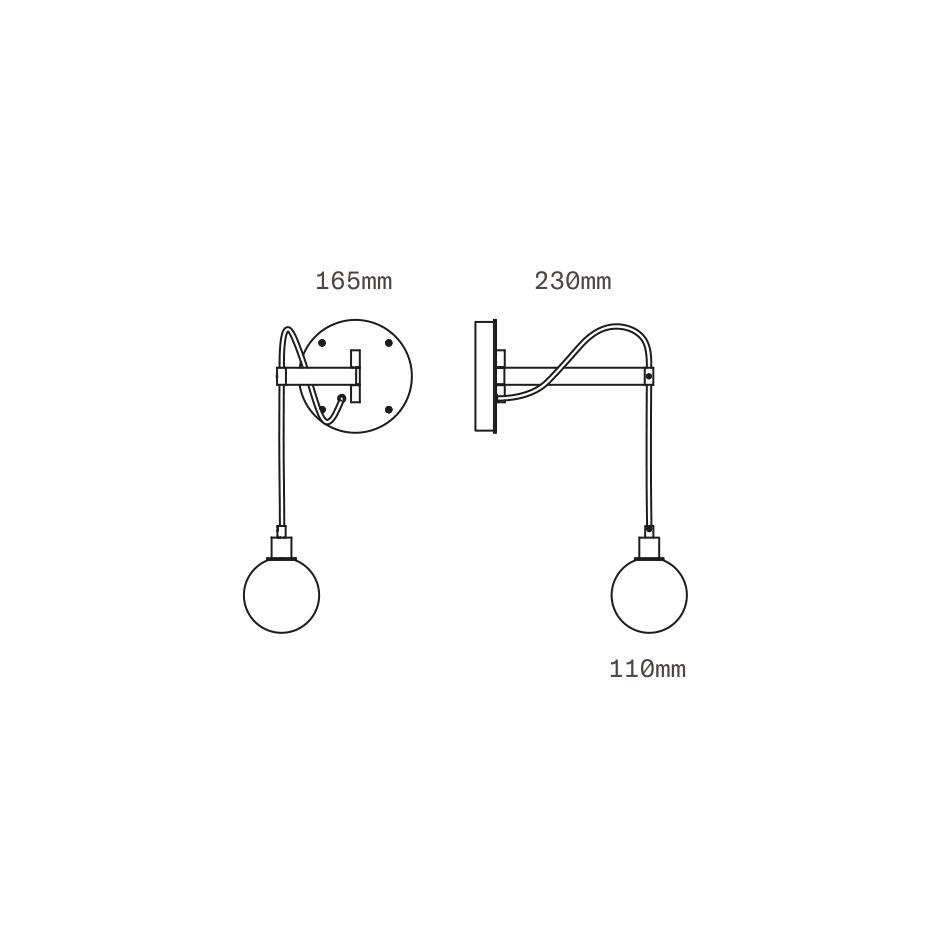 Drape Arm 1.09 Vägglampa 110mm Sphere Dark Oxidized/Smoke Dipped