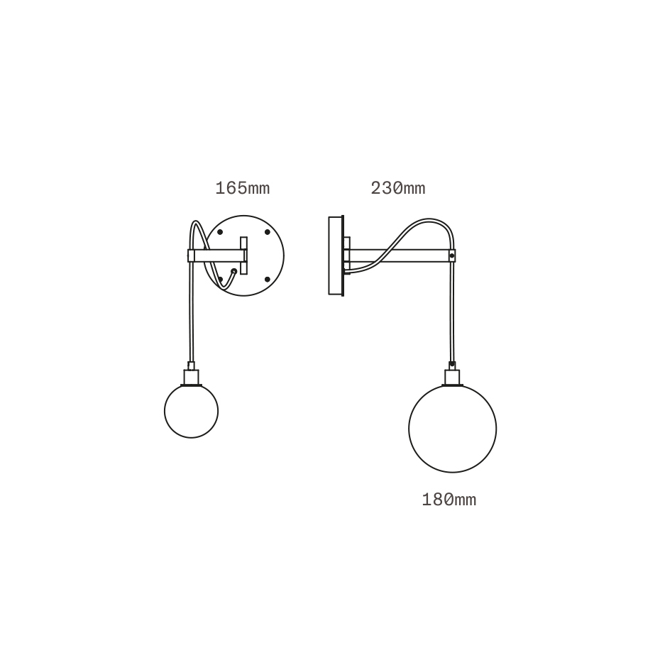 Drape Arm 1.09 Vägglampa 180mm Sphere Dark Oxidized/Clear Dipped