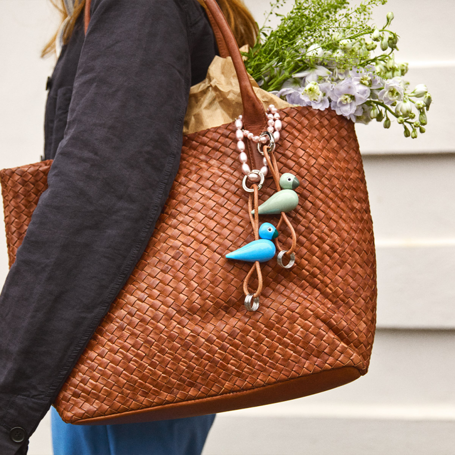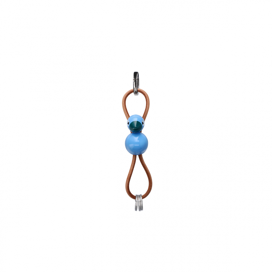 Fågel Nyckelring Silverfärgad Naturläder/Blå