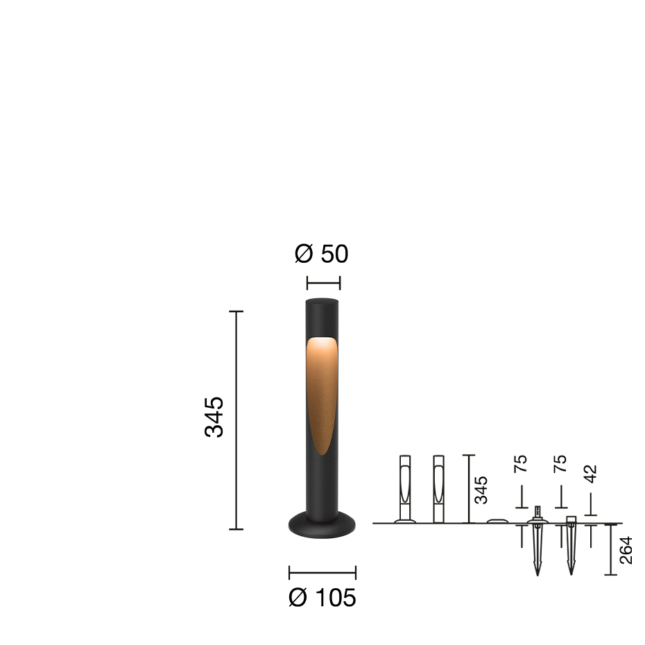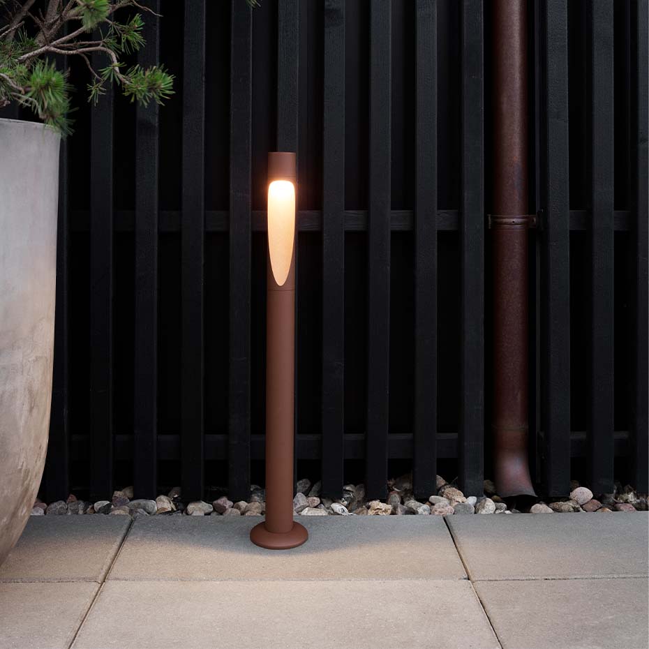 Pollare med fotplatta, för montering på en yta, kräver installation av behörig elektriker.