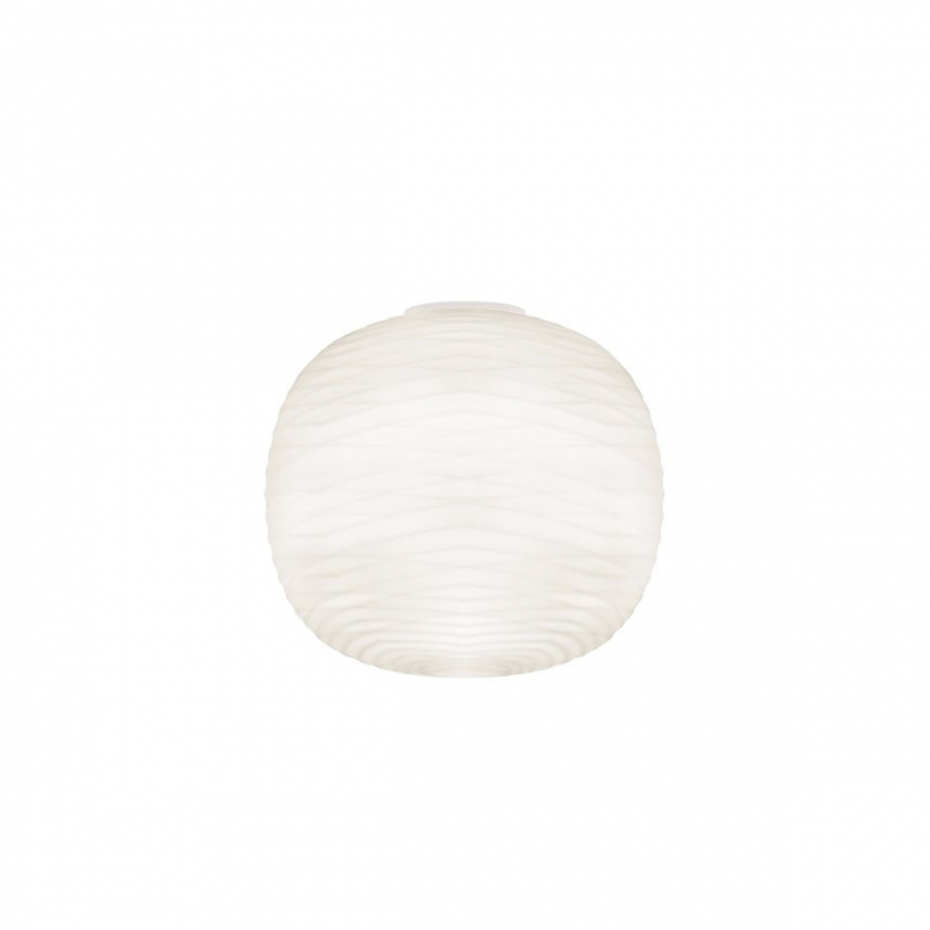 Gem Plafond från Foscarini är en elegant taklampa i munblåst glas med ett unikt, vågformat mönster. Denna designlampa monteras direkt mot taket och ger en mjuk, bländfri ljussättning med ett vackert spel av ljus och skugga. Perfekt för dig som söker en sofistikerad och tidlös design till din inomhusbelysning i vardagsrummet eller hallen.