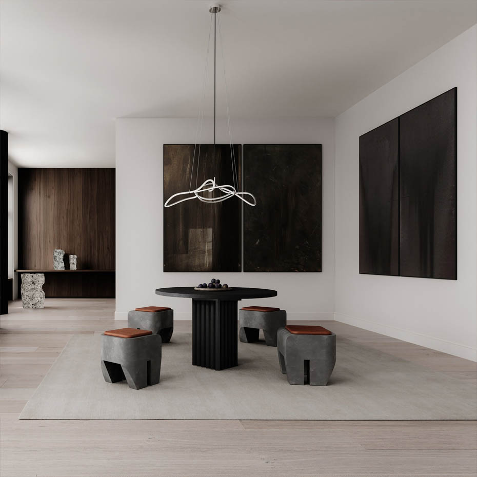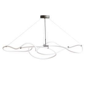 • Ghost Chandelier inspireras av minimalistisk konst och förenar ljus med skulptur i en grafisk ljusestetik. Dess signatur är ett strålande vitt akrylrör som slingrar sig organiskt, skapar stämningsfull belysning och förändras beroende på betraktarens vinkel.