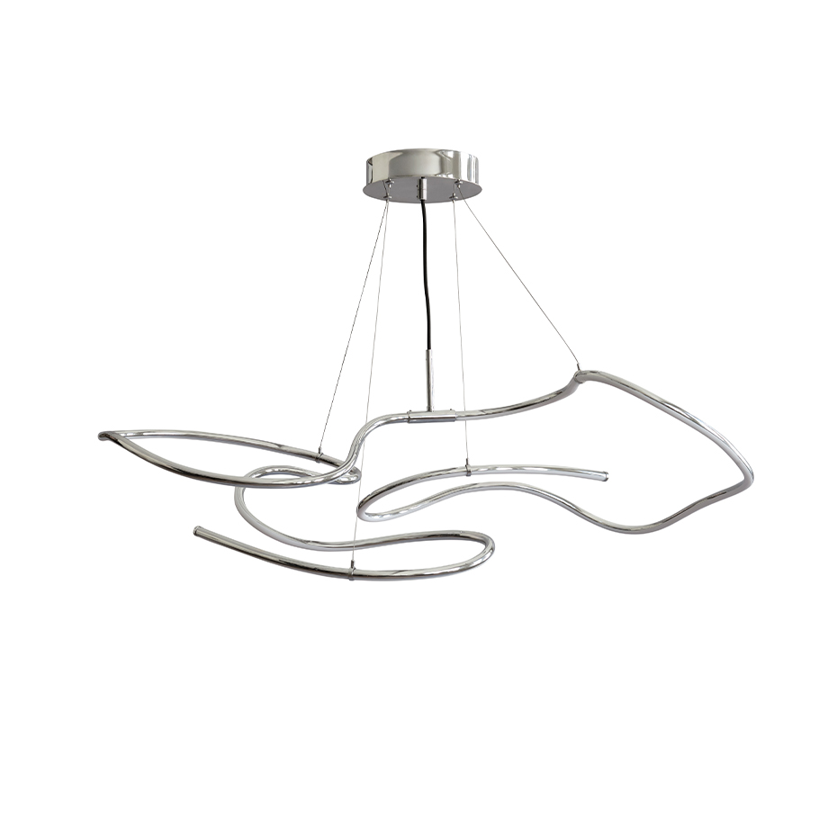 Ljuskronan finns i tre utföranden – Neon, Burned Black och Chrome – samt två storlekar, med en inbyggd LED-ljuskälla som ger 25 000 timmars varmt ljus (2400 K). Den handgjorda designen sprider ljuset unikt längs de böljande rören, vilket ger en levande effekt.
