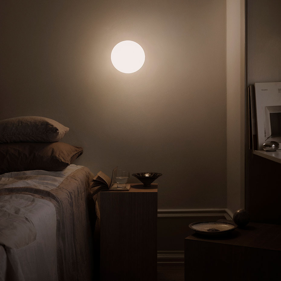 Första lampan i Glo-ball serien ritades 1998 av engelsmannen Jasper Morrison. Den blev snabbt en storsäljare och därefter har serien vuxit med fler modeller och storlekar. Lampan ger ett mjukt och behagligt ljus - och blir extra bra tillsammans med en dimmer.