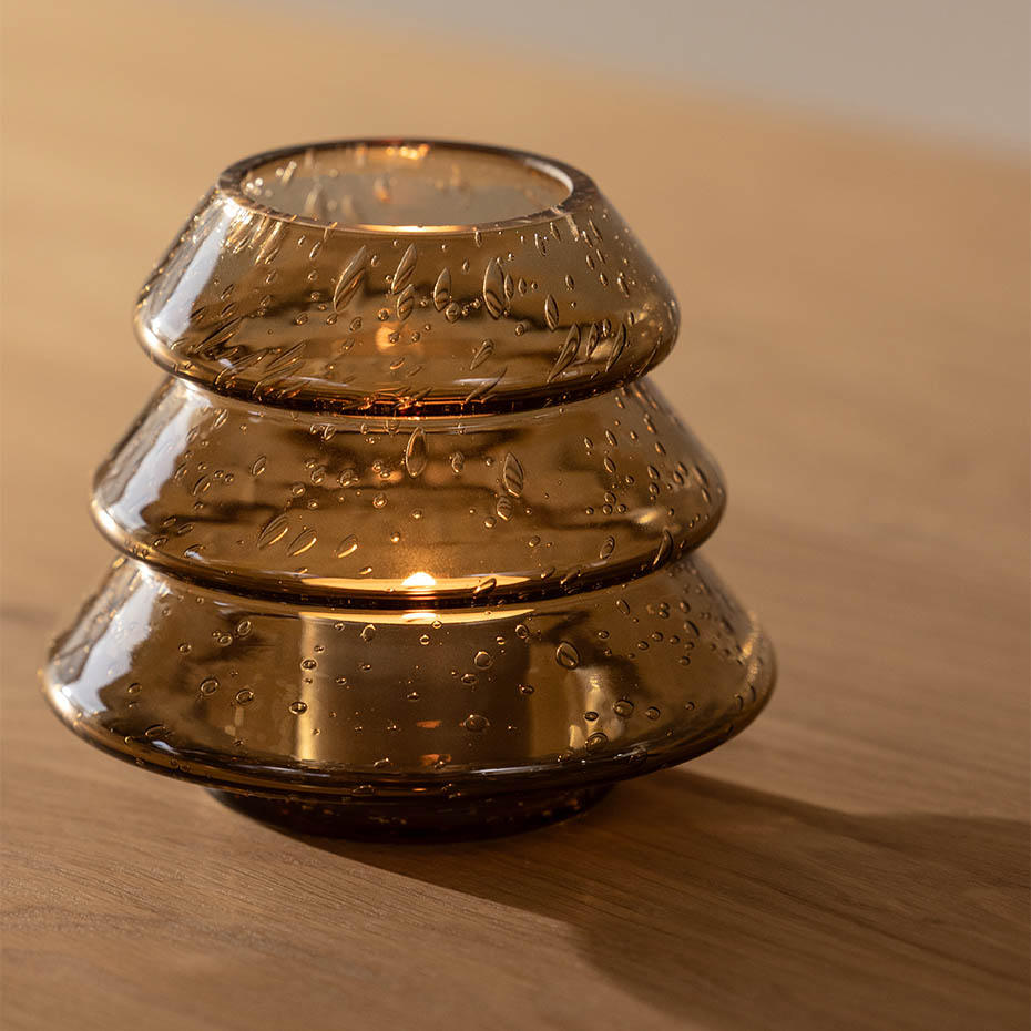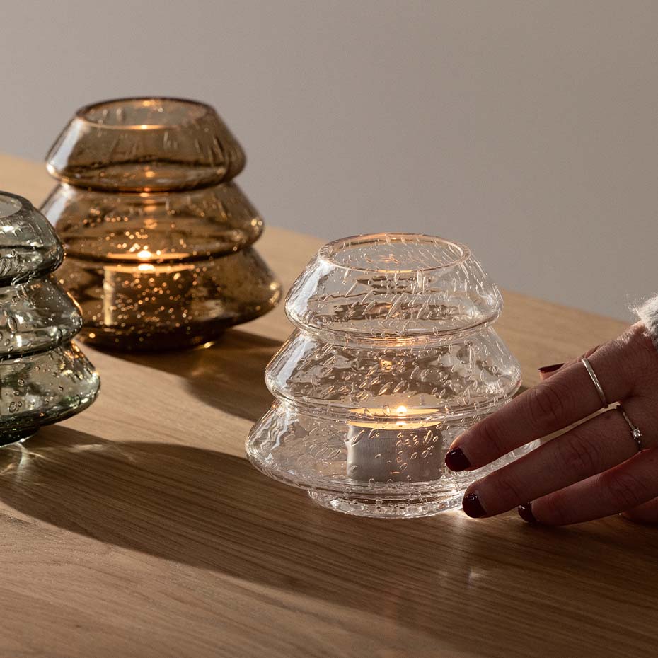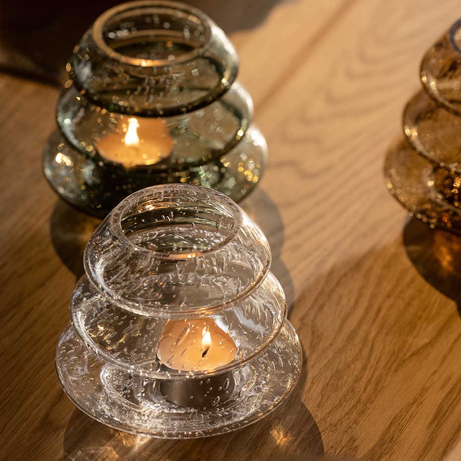 Gran 12 Ljuslykta från Globen Lighting är en elegant ljuslykta i munblåst glas, vars små luftbubblor skapar ett vackert, levande ljusspel. Varje exemplar är unikt tack vare det handgjorda hantverket, vilket gör att variationer i glastjocklek, färg och bubblor kan förekomma. Ljushållaren sprider ett mjukt och behagligt sken och kan även användas som en liten vas för blommor. En mångsidig detalj som tillför både värme och karaktär till inredningen.