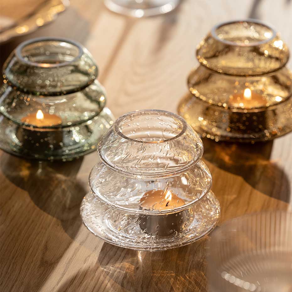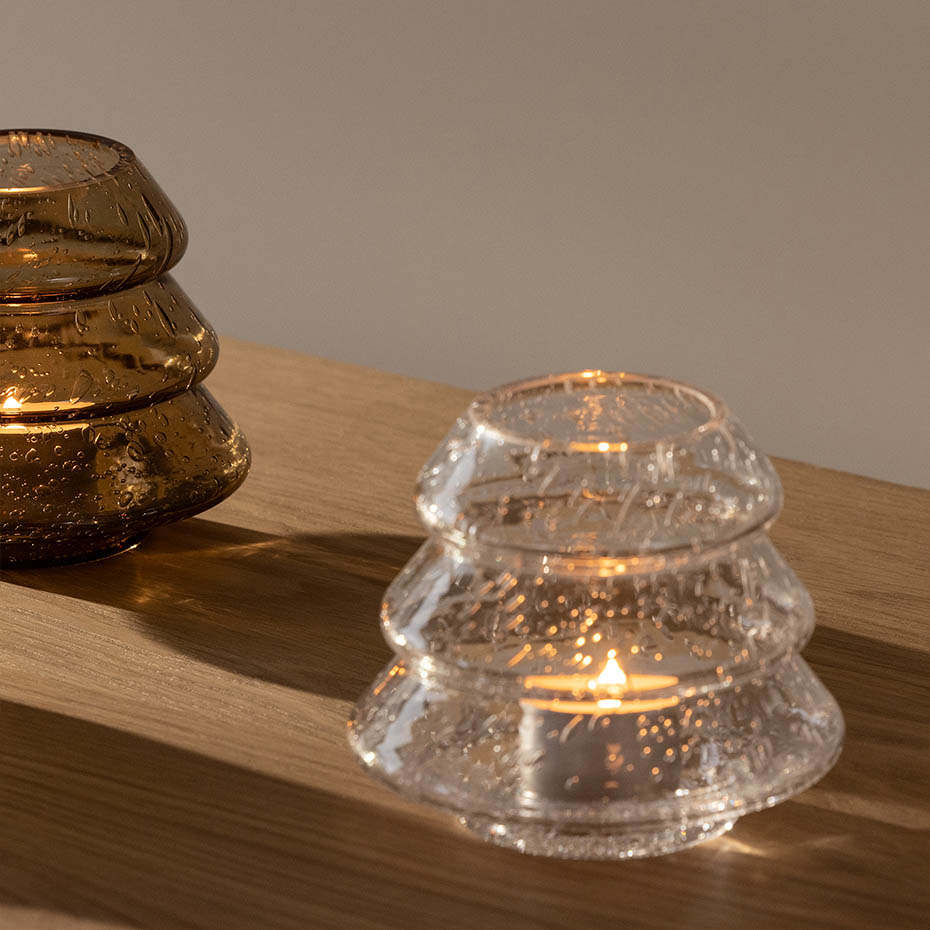 Gran 12 Ljuslykta från Globen Lighting är en elegant ljuslykta i munblåst glas, vars små luftbubblor skapar ett vackert, levande ljusspel. Varje exemplar är unikt tack vare det handgjorda hantverket, vilket gör att variationer i glastjocklek, färg och bubblor kan förekomma. Ljushållaren sprider ett mjukt och behagligt sken och kan även användas som en liten vas för blommor. En mångsidig detalj som tillför både värme och karaktär till inredningen.
