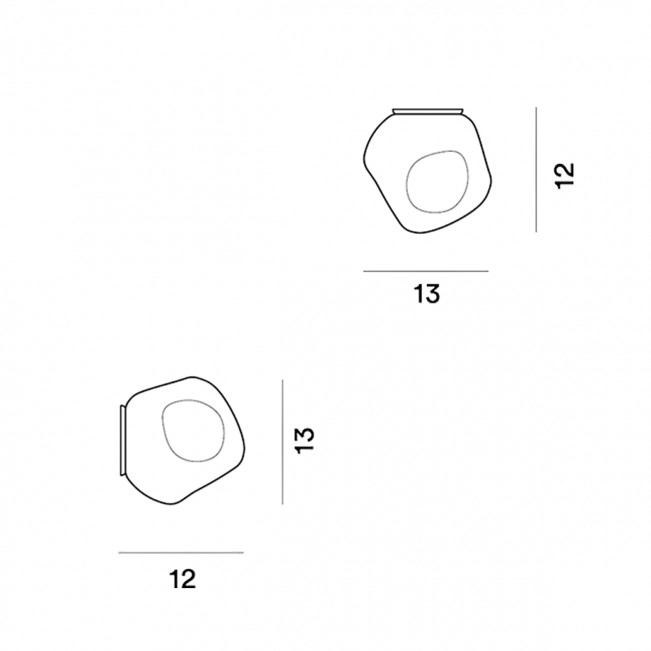 Hoba Taklampa/Vägglampa Small (Piccola) från Foscarini är en unik designlampa i matt, munblåst glas med en asymmetrisk form inspirerad av en fallen meteorit. Denna karaktärsfulla armatur sprider en varm och omslutande ljussättning och kan tack vare sin flexibla konstruktion monteras både i taket och på väggen för att skapa ett personligt uttryck i rummet.
