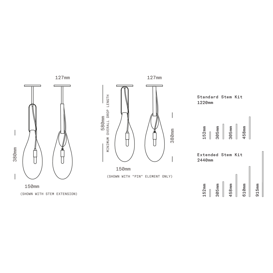 En förlängd stångsats finns som tillval med ytterligare längder upp till 91,5 cm. Anpassade stånglängder kan erbjudas mot tillägg.