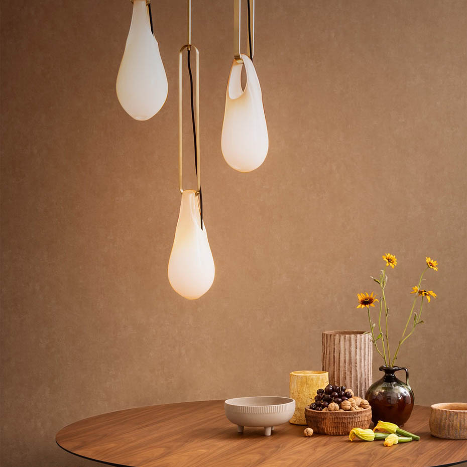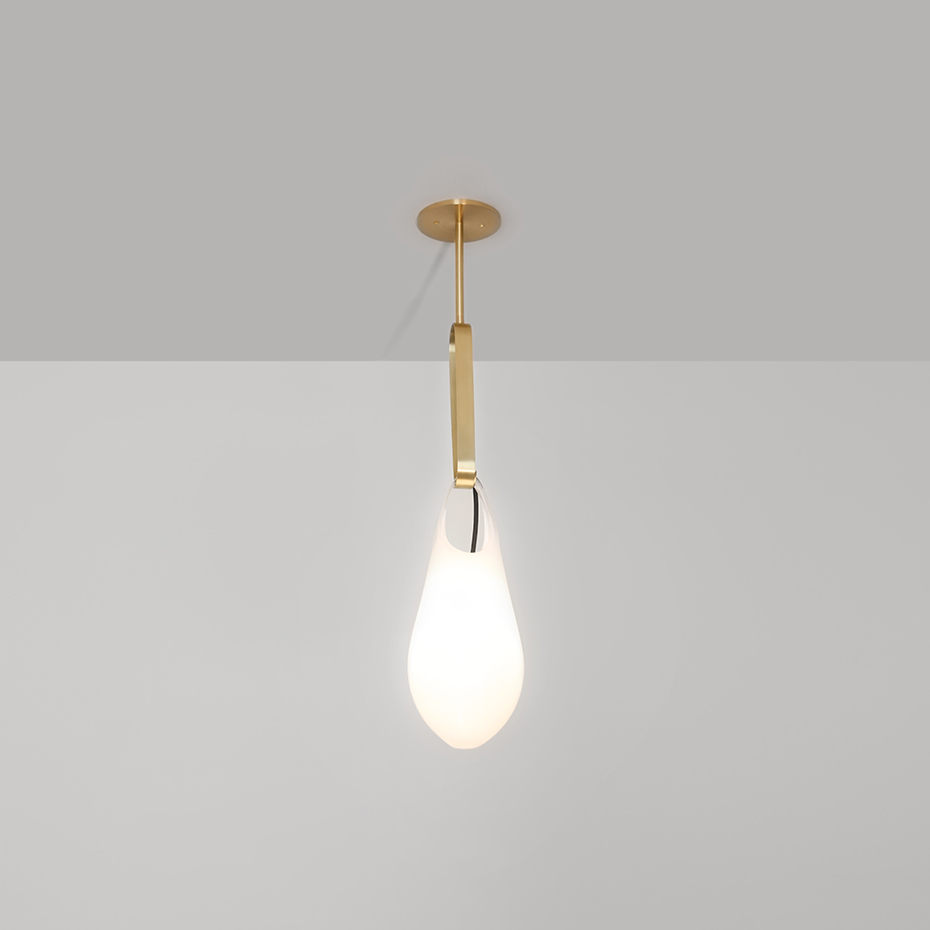 Hold Pin 1.09 Pendel från SkLO är en uttrycksfull pendellampa där en munblåst glaskupa tycks sträckas under sin egen tyngd och bildar ett unikt, skulpturalt formspråk. Kupans upphängning sker via ett karakteristiskt “pin”-element i mässing.