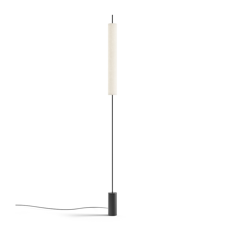 Diameter: 8 cm Höjd: 182 cm Ljuskälla: Integrerad Material: Aluminium/Stål/Bomullspapper (100%) Sockel: LED, 32 W 2700 K CRI 90 Övrigt: Dimmer på sladden