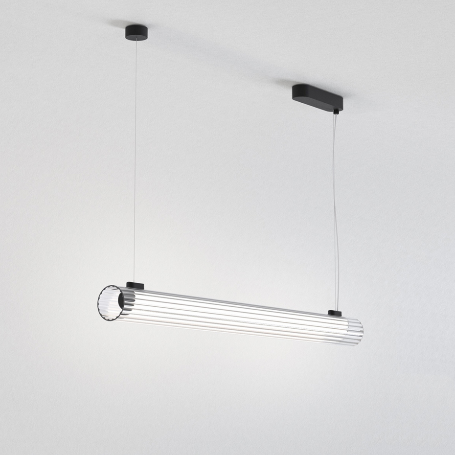 Bredd: 100 cm Diameter: 8 cm (skärm) Ljuskälla: Integrerad Material: Metall/Klarglas Sladdlängd: 2 m Sockel: LED, 20,2 W 2328 lm 3000 K CRI 90 3-stegs MacAdam 60.000 h Övrigt: Dimbar med Phase - Trailing Edge styrsystem