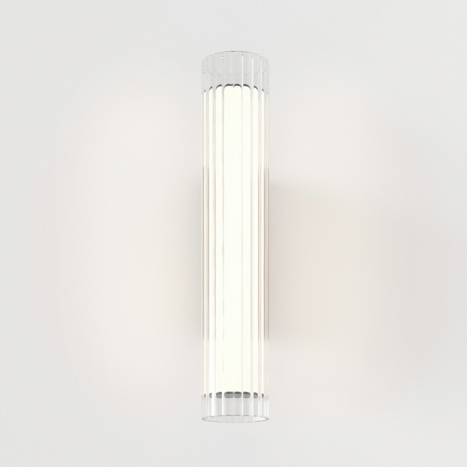 io 420 LED Vägglampa IP44 från Astro Lighting är en unik designlampa inspirerad av antik grekisk arkitekturs räfflade pelare. Denna karaktärsfulla armatur består av en mångfacetterad glascylinder som vilar i ett diskret fäste, vilket ger en modern tolkning av klassiska former. Den är handgjord enligt högsta standard och sprider en varm, omslutande ljussättning (3000K) som fungerar utmärkt som både arbetsbelysning och stämningsljus. Med sin dimbara funktion och IP44-klassning är io 420 ett stilrent blickfång som ger ett personligt uttryck i badrummet.