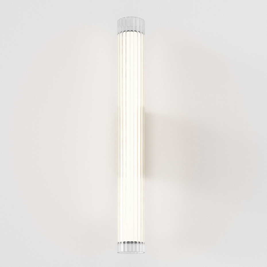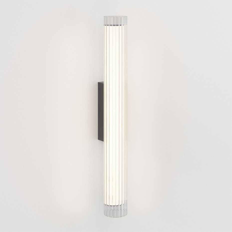 io 665 LED Vägglampa IP44 från Astro Lighting är en unik designlampa inspirerad av antik grekisk arkitekturs räfflade pelare. Denna karaktärsfulla armatur består av en lång, mångfacetterad glascylinder som vilar i ett diskret fäste, vilket ger en modern tolkning av klassiska former. Den är handgjord enligt högsta standard och sprider en varm, omslutande ljussättning (3000K) som fungerar utmärkt som både arbetsbelysning och stämningsljus. Med sin dimbara funktion och IP44-klassning är io 665 ett stilrent blickfång som ger ett personligt uttryck i badrummet.
