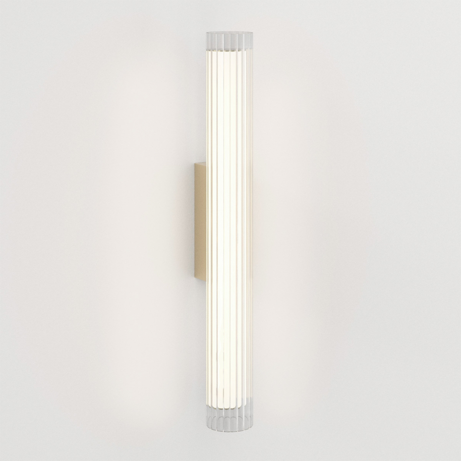 io 665 LED Vägglampa IP44 från Astro Lighting är en unik designlampa inspirerad av antik grekisk arkitekturs räfflade pelare. Denna karaktärsfulla armatur består av en lång, mångfacetterad glascylinder som vilar i ett diskret fäste, vilket ger en modern tolkning av klassiska former. Den är handgjord enligt högsta standard och sprider en varm, omslutande ljussättning (3000K) som fungerar utmärkt som både arbetsbelysning och stämningsljus. Med sin dimbara funktion och IP44-klassning är io 665 ett stilrent blickfång som ger ett personligt uttryck i badrummet.