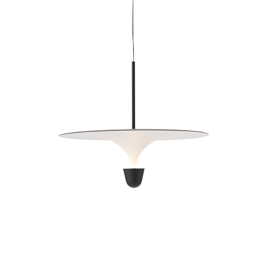 Kantarell Pendel Ø60cm från New Works är resultatet av en studie i hur ljus kan riktas och formas. Med sin trumpetliknande silhuett fungerar den som en tratt som sprider ljuset från en nästan dold ljuskälla i mitten. Formen gör att lampan kan hängas både högt och lågt, vilket framhäver olika sidor av dess poetiska och flytande uttryck, från den välvda undersidan till den mjukt böjda ovansidan. Oavsett placering tillför Kantarell Pendel en skulptural närvaro och ett stämningsfullt ljus till rummet.